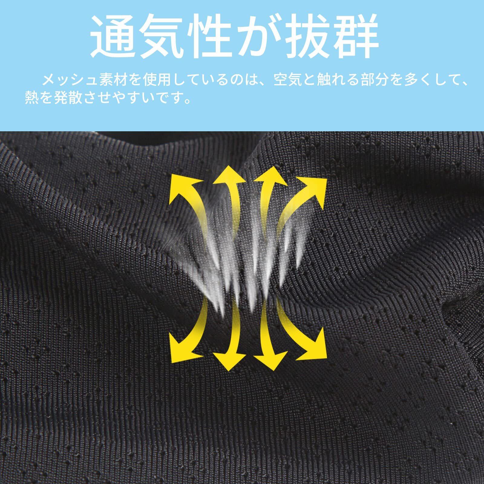 接触冷感:生地は薄手で接触冷感のあるナイロンとスパンデックスの混紡素材です。接触した瞬間に「冷たさ」を感じて気持ちいいです。夏におすすめです!