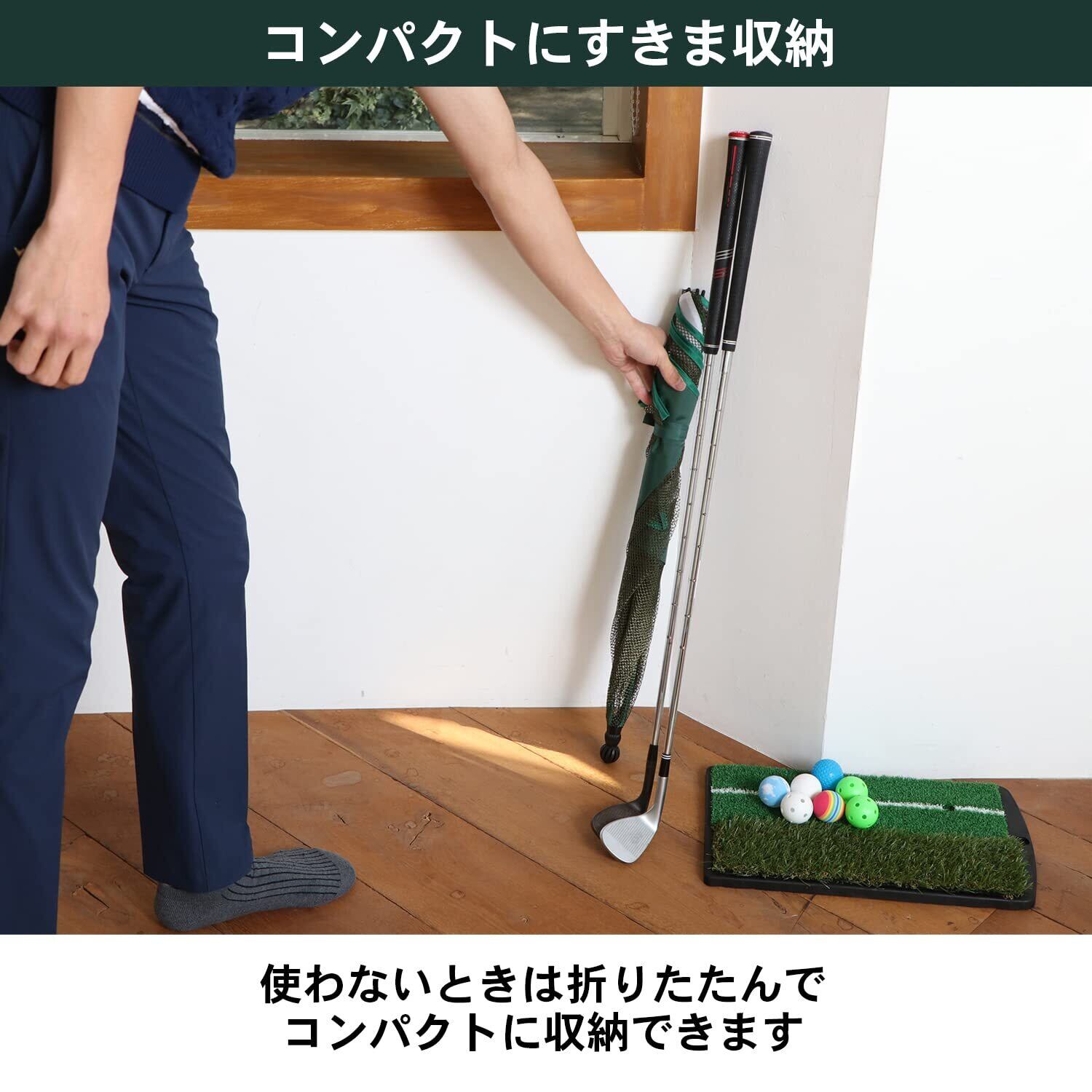 【狭い室内や庭でも練習できる省スペース】狭い室内や庭の隅などちょっとしたスペースで練習できるコンパクト仕様。小さすぎず、アプローチの練習に最適。畳むと傘のようにコンパクトになるから練習後の片付けも簡単。