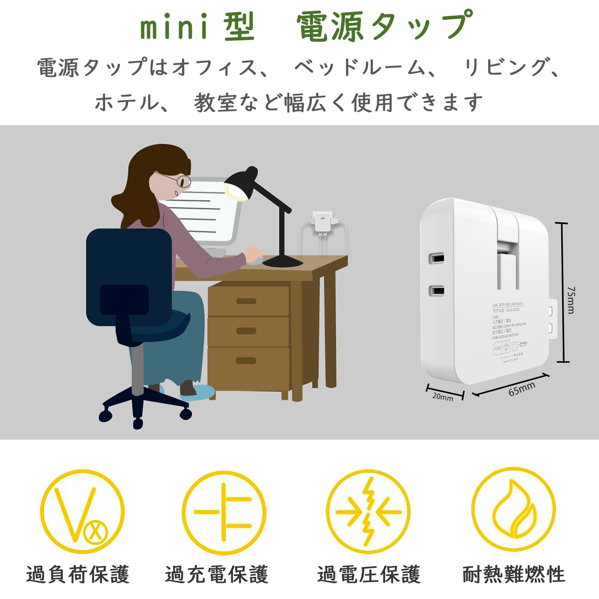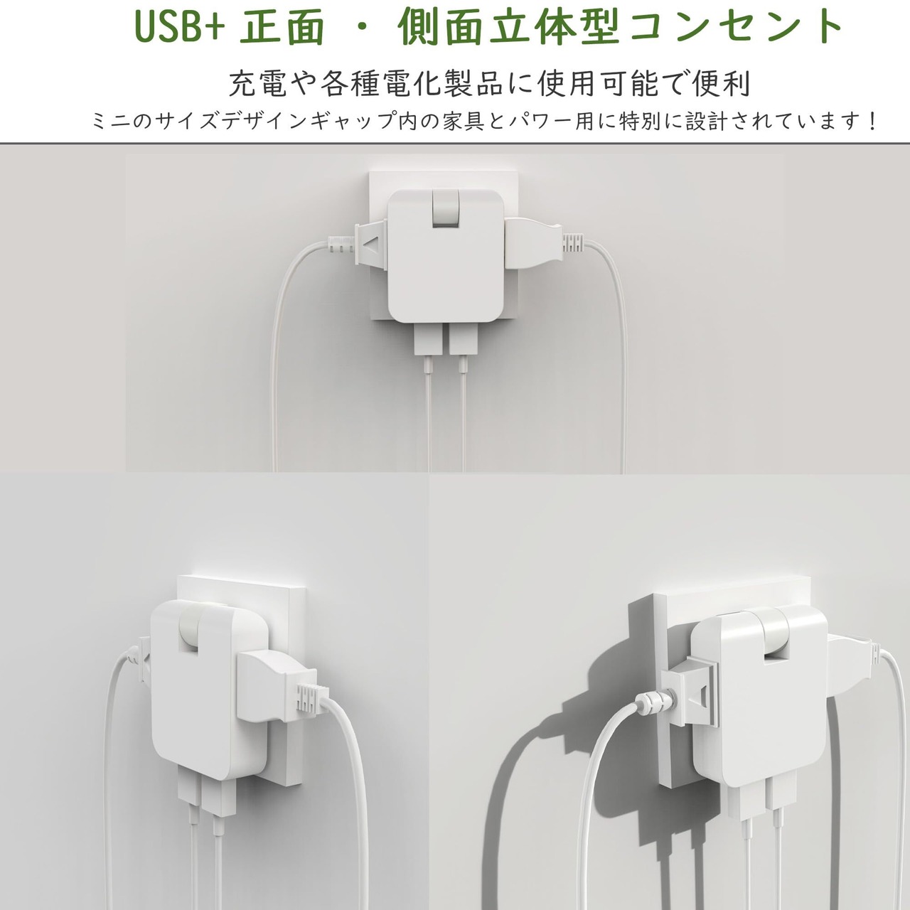 AKIRARI コーナータップ 4個口 AC2個 USB2個 電源タップ USB付き 薄型 スイングプラグ 配線しやすい コンセント 平トリプル すき間コンセント 100V 240V 海外対応 旅行 PSE認定 mini型電源タップ (2個セット)