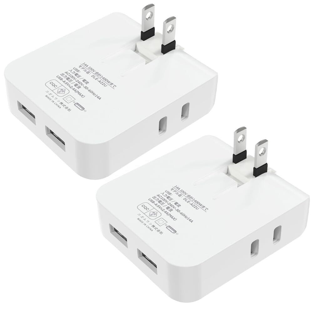 【在庫セール】AKIRARI コーナータップ 4個口 AC2個 USB2個 電源タップ USB付き 薄型 スイングプラグ 配線しやすい コンセント 平トリプル すき間コンセント 100V 240V 海外対応 旅行 PSE認定 mini型電源タップ (2個セット)