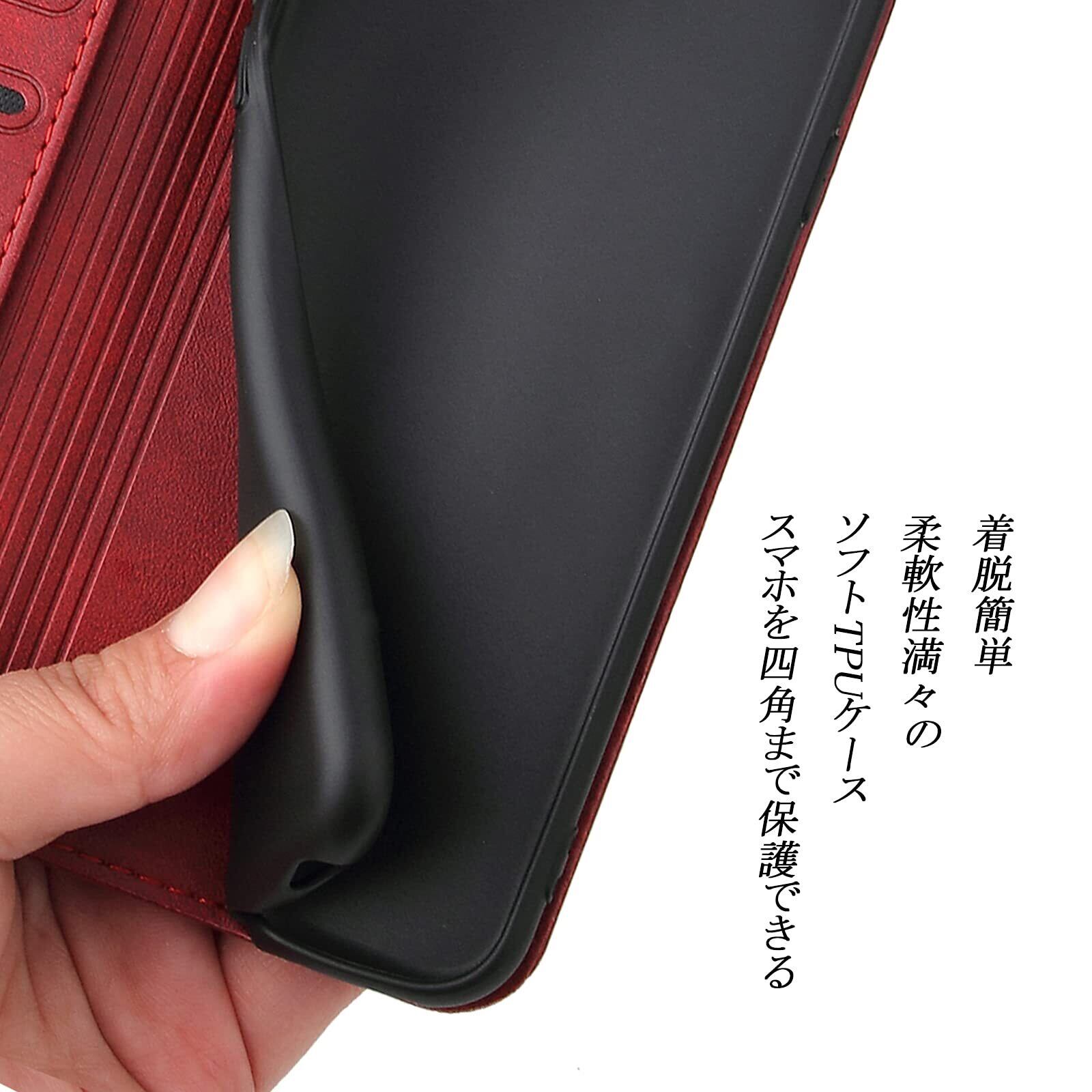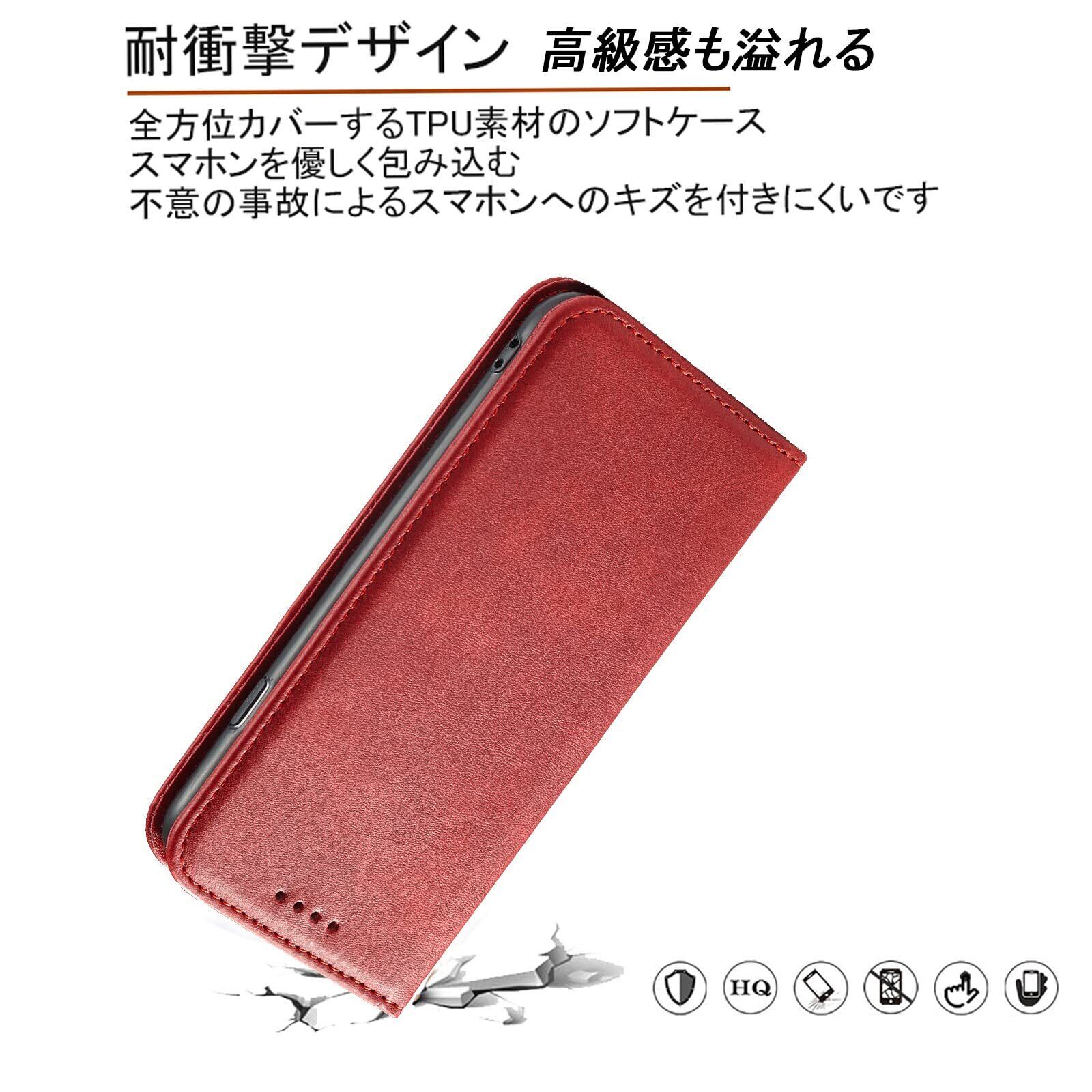 京セラ かんたんスマホ3 A205KC ケース 手帳型 簡単スマホ3 手帳 カバー A205KC 手帳型ケース ワイモバイル 適用 携帯ケース Y!mobile simフリー A205KC case スマホケース 携帯カバー PUレザー ストラップホール付き カード収納 内蔵マグネット式 スタンド機能 薄型 防水 ノート型 耐衝撃 赤 (かんたんスマホ3 A205KC 対応) レッド