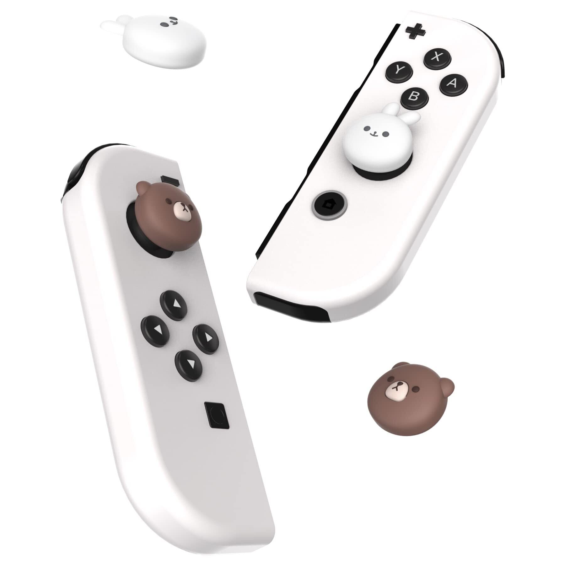【在庫セール】PlayVital Switch対応ジョイスティックキャップ、Switch Liteに対応用サムスティックキャップ、有機elモデルに対応用シリコンアナログスティックキャップカバー、ぽっちゃりベア&スマイリーバニー【白&ブラウン】 | nico3588