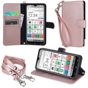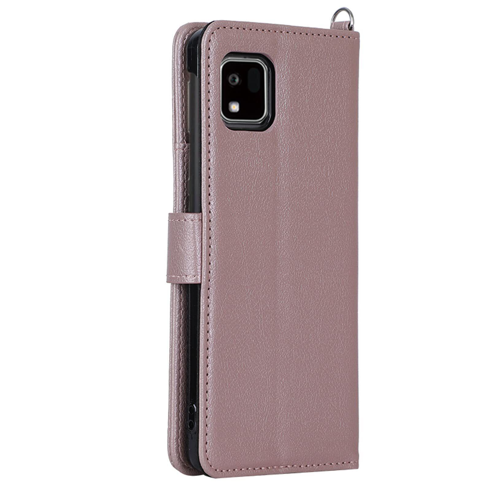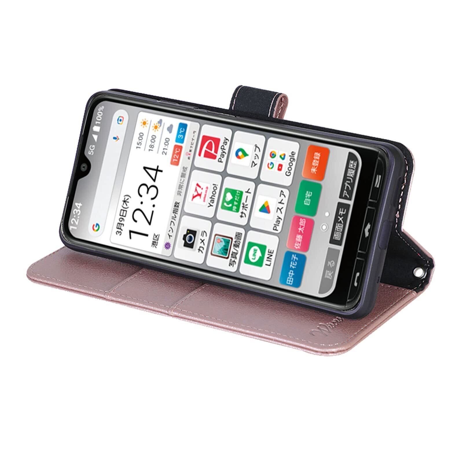 wisers かんたんスマホ3 簡単スマホ3 A205KC 対応 手帳型スマホケース (ローズゴールド) ストラップ 2種付き (ハンドストラップ/ネックストラップ)