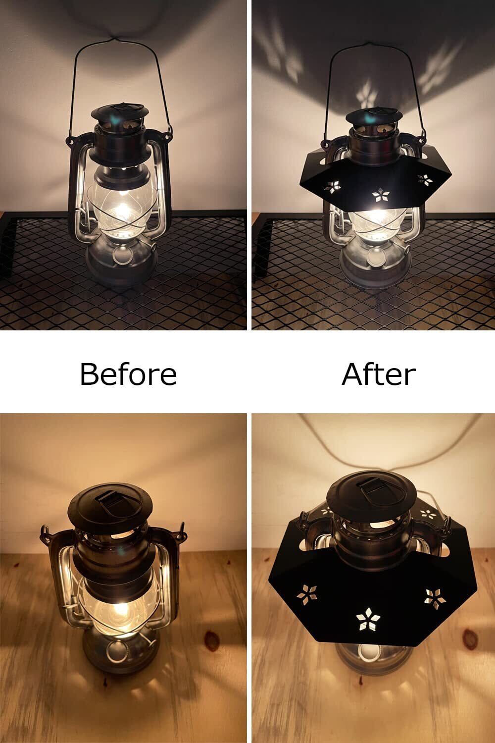 【照明改善】ランタンシェードを設置することで、まぶしさを防ぐだけでなく、更に光を有効に活用することができます。光沢のあるランタンシェードの内面設計は、灯篭の光を下向きに反射して、灯篭の底をもっと明るくし、下の影も消えるほどの効果があります
