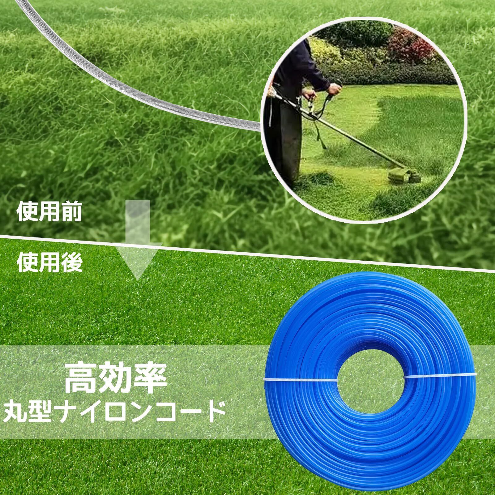 【特価セール】DY.2ten 草刈用 ナイロンコード 直径2.4mm 全長100m 草刈り機 替えコード 耐磨耗性 丸型 メンテナンス簡単 芝刈り機用交換用ロープ 芝草 雑草 ブタクサ ヨモギ 芝刈り縄 ブルー | nico3588