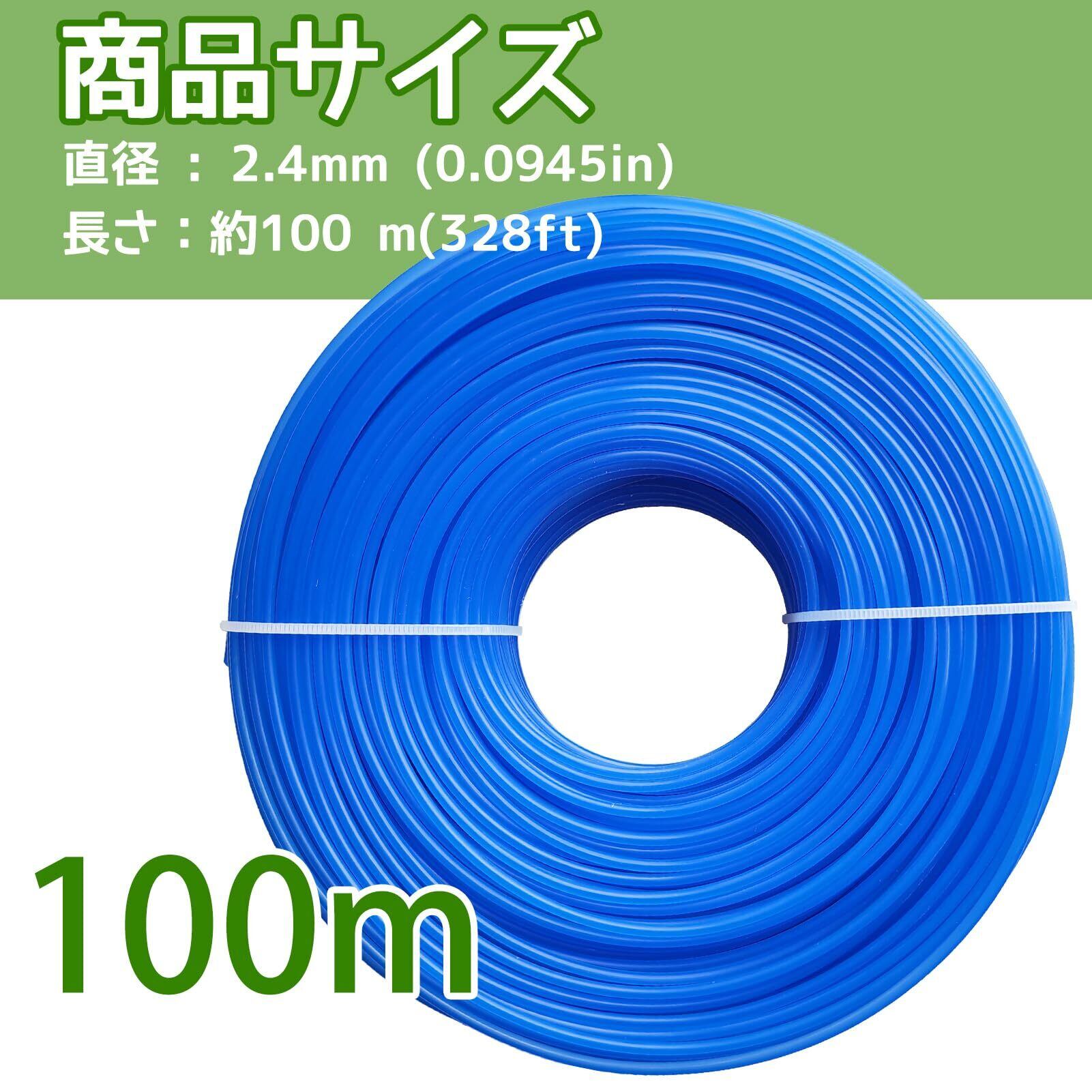 DY.2ten 草刈用 ナイロンコード 直径2.4mm 全長100m 草刈り機 替えコード 耐磨耗性 丸型 メンテナンス簡単 芝刈り機用交換用ロープ 芝草 雑草 ブタクサ ヨモギ 芝刈り縄 ブルー