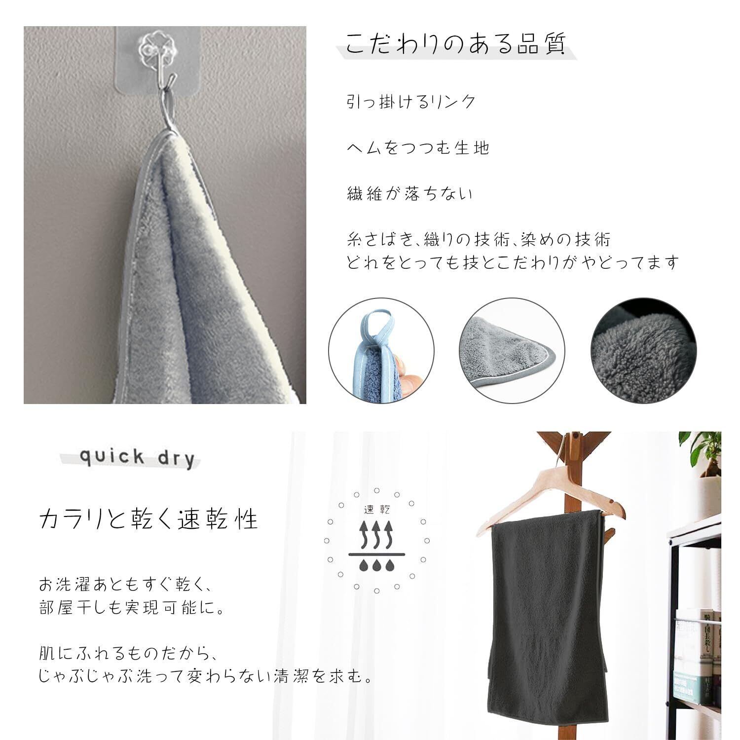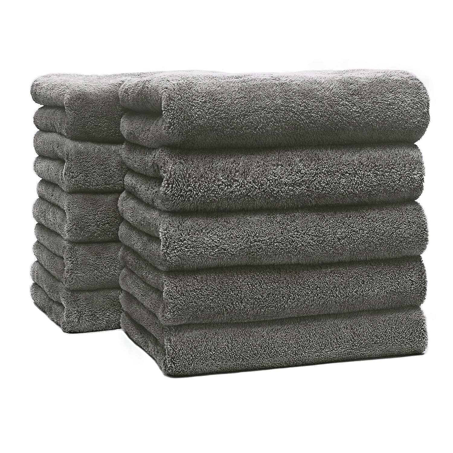 フェイスタオル 10枚セット 吸水速乾 無地 ふわふわ なめらか 速乾 耐久性 毛羽落ち少ない 引っ掛けやすい 人気 10枚 家庭用 業務用 極細繊維 抗菌 防臭 通気 (75cmX35cm, ブラックグレー)