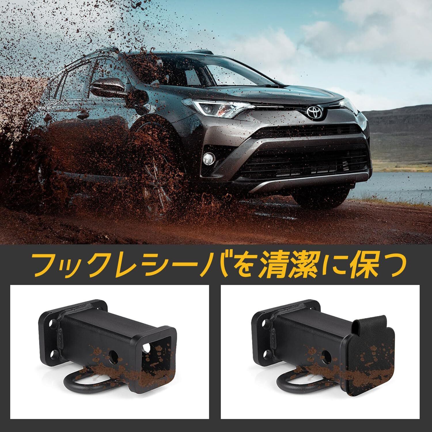 【保護機能】牽引フックのデザインにより、トレーラーが未使用の際に水、泥、雪、霜からしっかりと保護します。受信管の錆を防ぎ、トレーラーとの接続を安全に保ちます。