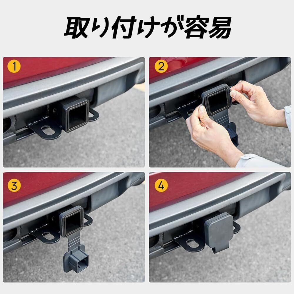 【取り付け簡単】簡単な取り付け方法で、ヒッチレシーバーに押し込むだけで完了します。多くの車種に適応し、しっかりフィットする設計です。