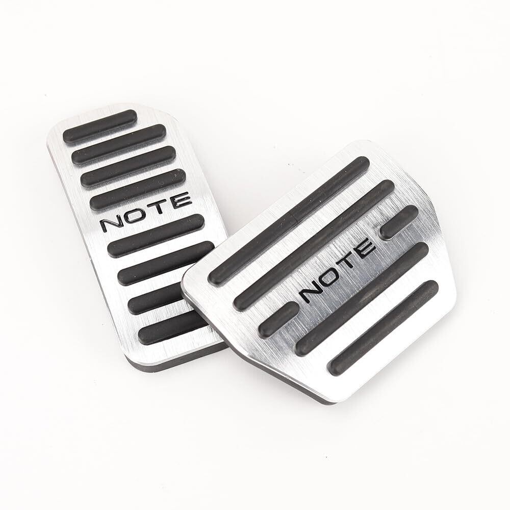 LEXLEYS「改良型」 ノート E12系 アルミ ペダル アクセル ブレーキ カバー 実車採寸 工具不要 滑り止め付 被せる ゴム カスタムドレスアップ パーツ(シルバー)