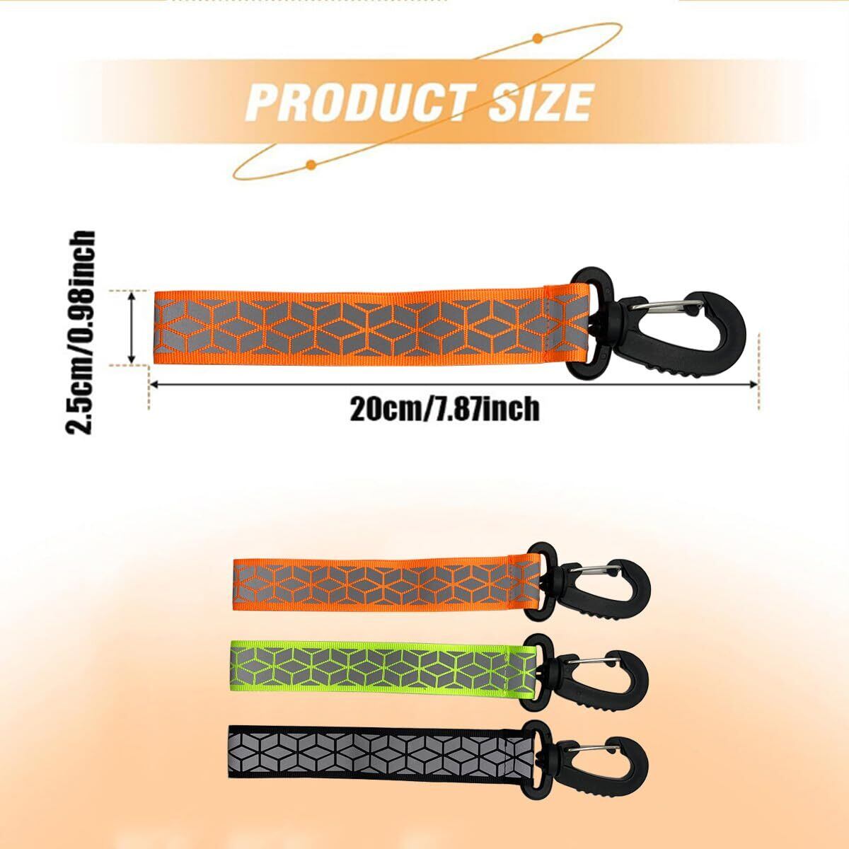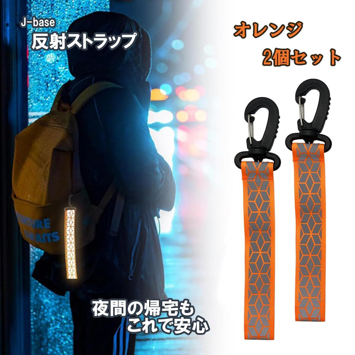カラビナ付きの反射ストラップ オレンジ2個セット