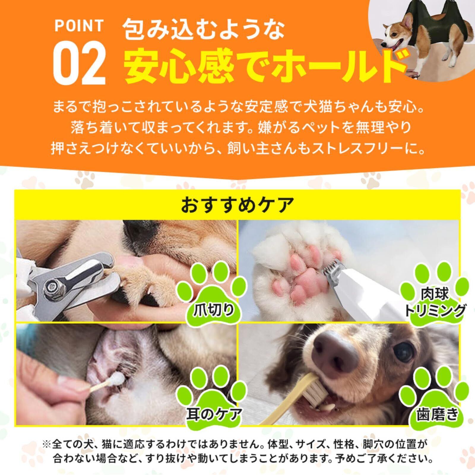 このハンモックは、ペットの暴れを抑える設計になっており、安心してグルーミングができます。特に、爪切りや耳掃除、歯磨きなどがスムーズに行えるため、飼い主さまの負担を軽減します。「ぜひこの『NEXARA 犬 ハンモック』で、愛するペットとのお手入れをより快適にしてみてはいかがでしょうか!」