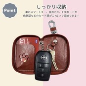 大きめのサイズで、スマートキーやカードをしっかり収納できます。内ポケットにはカードスロットも付いているため、クレジットカードや交通系ICカードなども一緒に収納できて、外出時に便利です。