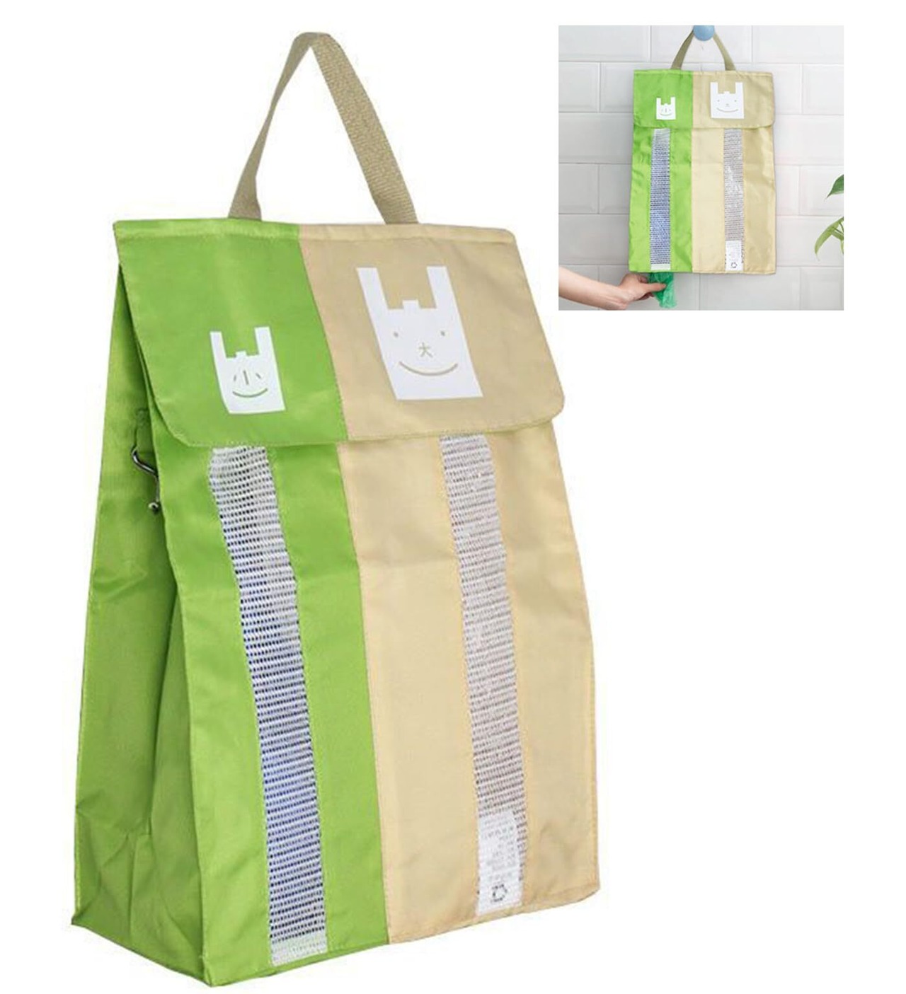 【特価商品】レジ袋ストッカー ナ キッチン収納 ゴミ袋ストッカー 中身が見える 大小仕分け サッと取り出せ便利 省スペース 吊り下げ 壁掛け キッチン収納 袋(グリーン)