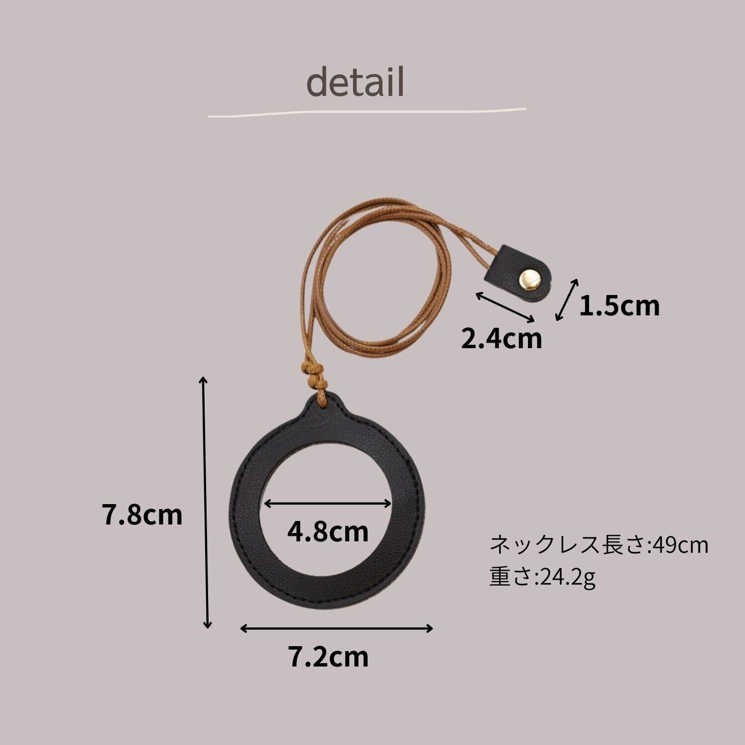 【サイズ】ネックストラップ長さ(長さ調整可能):49cm レンズ直径 ネックレストップ幅7.2cm×高さ7.8cm 重さ24.2g
