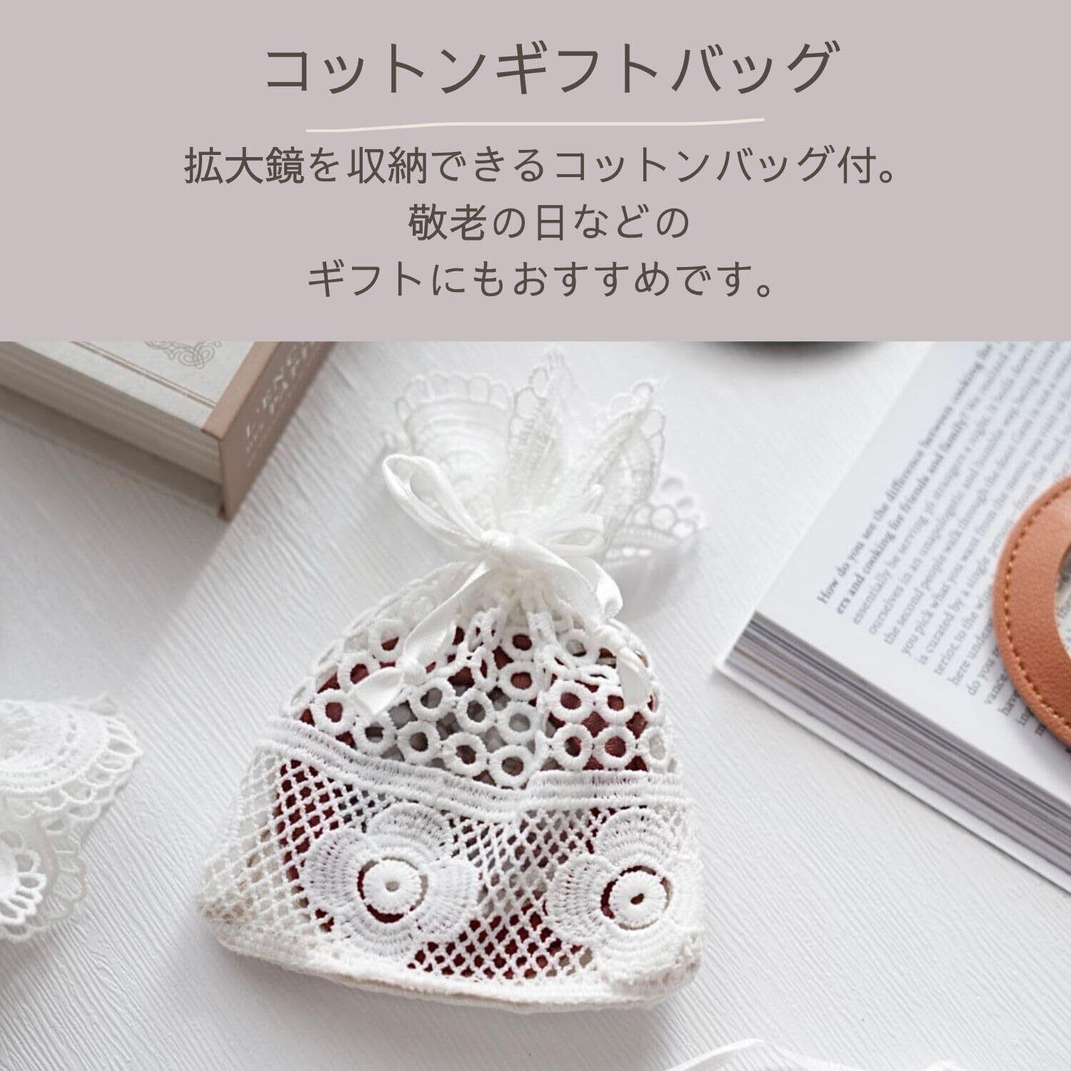 【ギフトにおすすめ】傷がつかないようコットンバッグにお入れしてお届けします。敬老の日・クリスマスプレゼント・母の日・父の日・誕生日プレゼントなどギフトにも最適なネックレスルーペです。