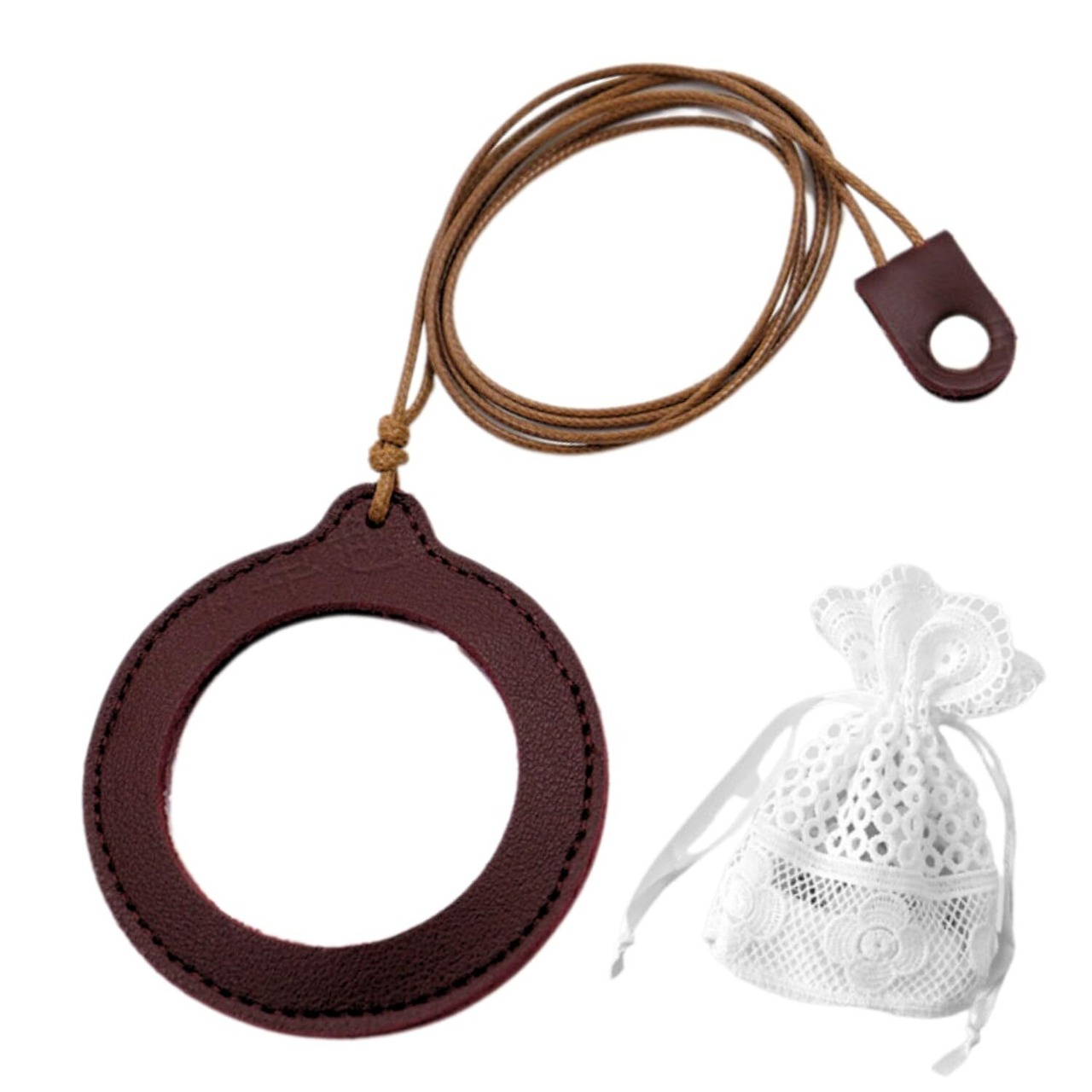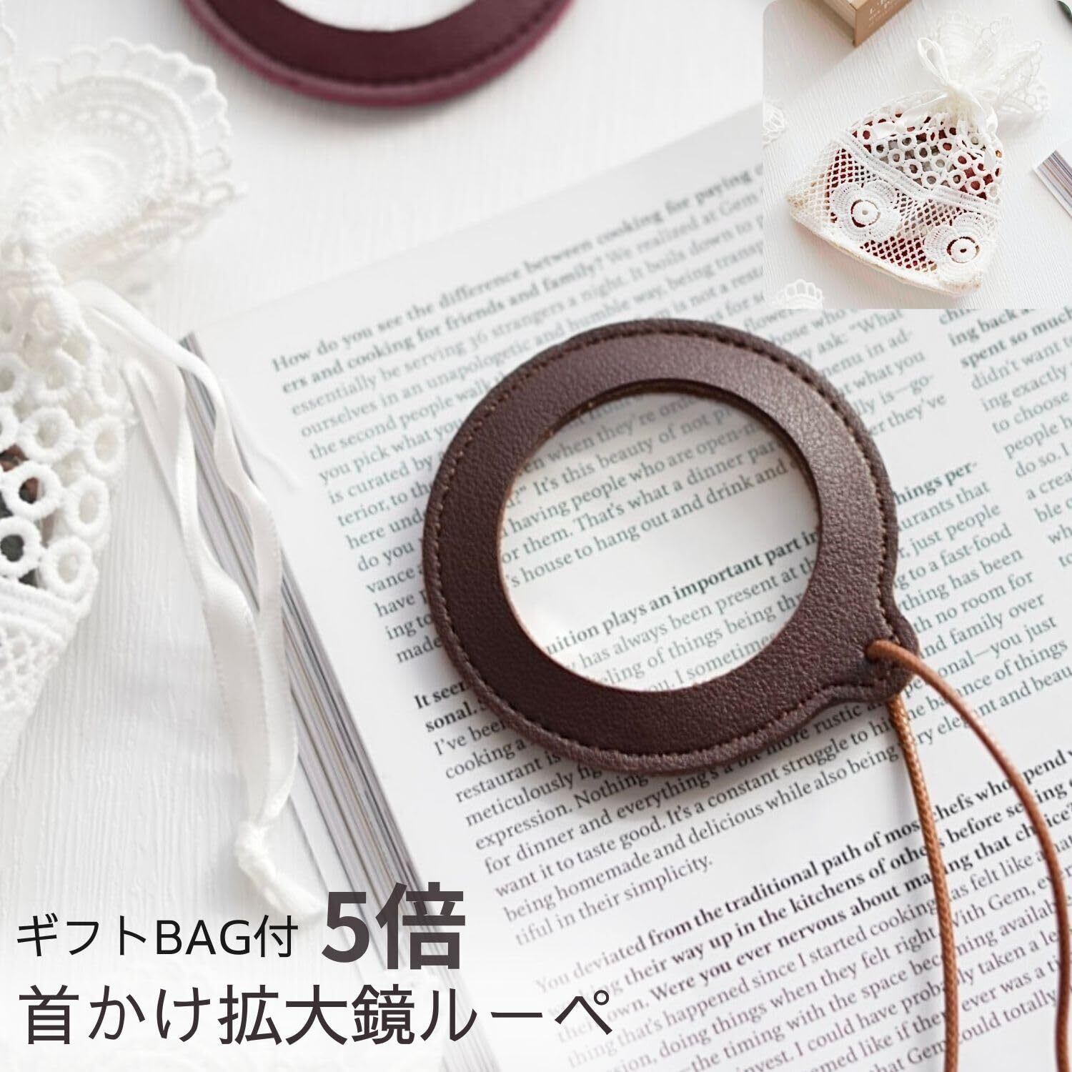 【紛失しにくくおしゃれなルーペ】紛失しにくい首掛けネックレスタイプの ルーペ 拡大鏡ネックレス です。どんな装いも邪魔しない落ち着いたレザー調