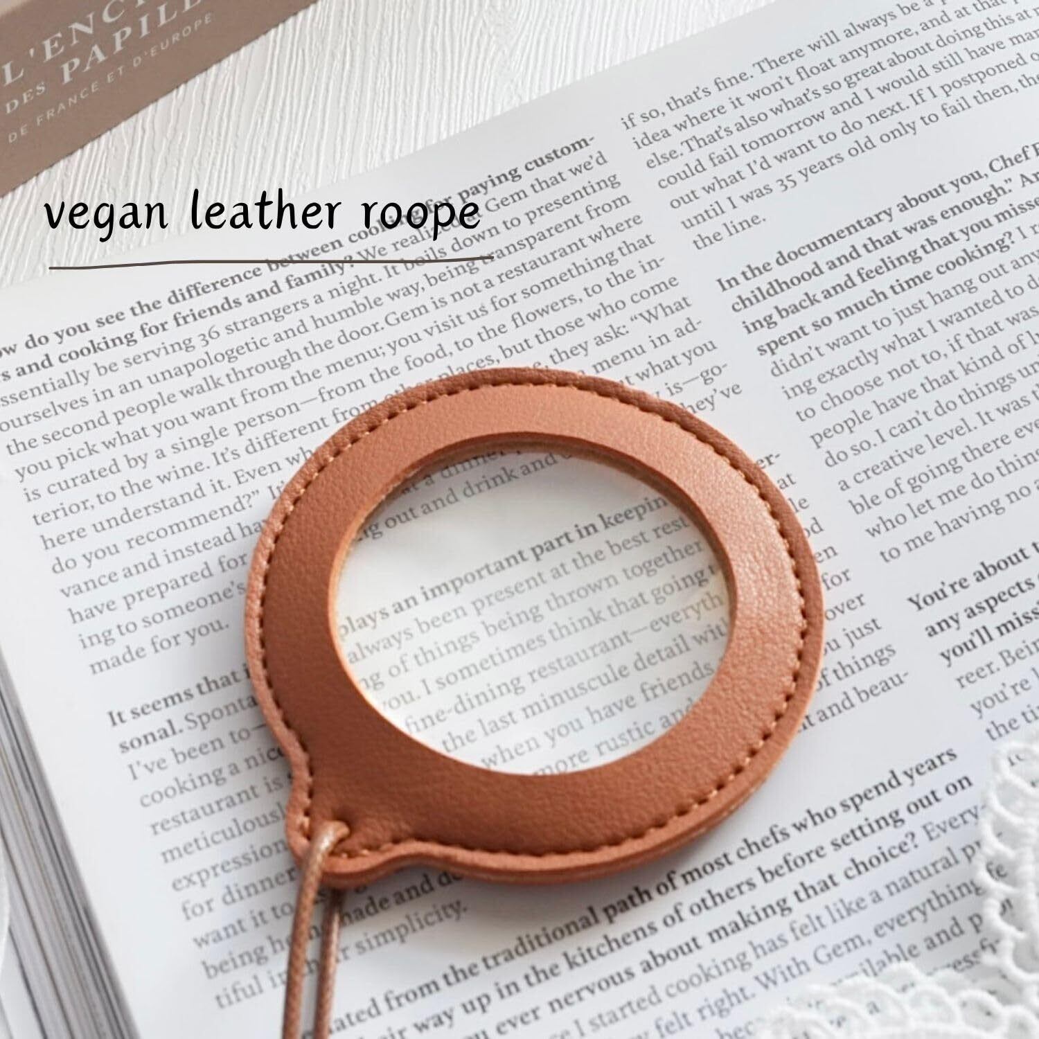 [Harvestmart] ルーペ 拡大鏡 ネックレス ペンダントルーペ 虫眼鏡 首下げ 首掛け 5倍 合皮 自由研究 (coffee (こげ茶))
