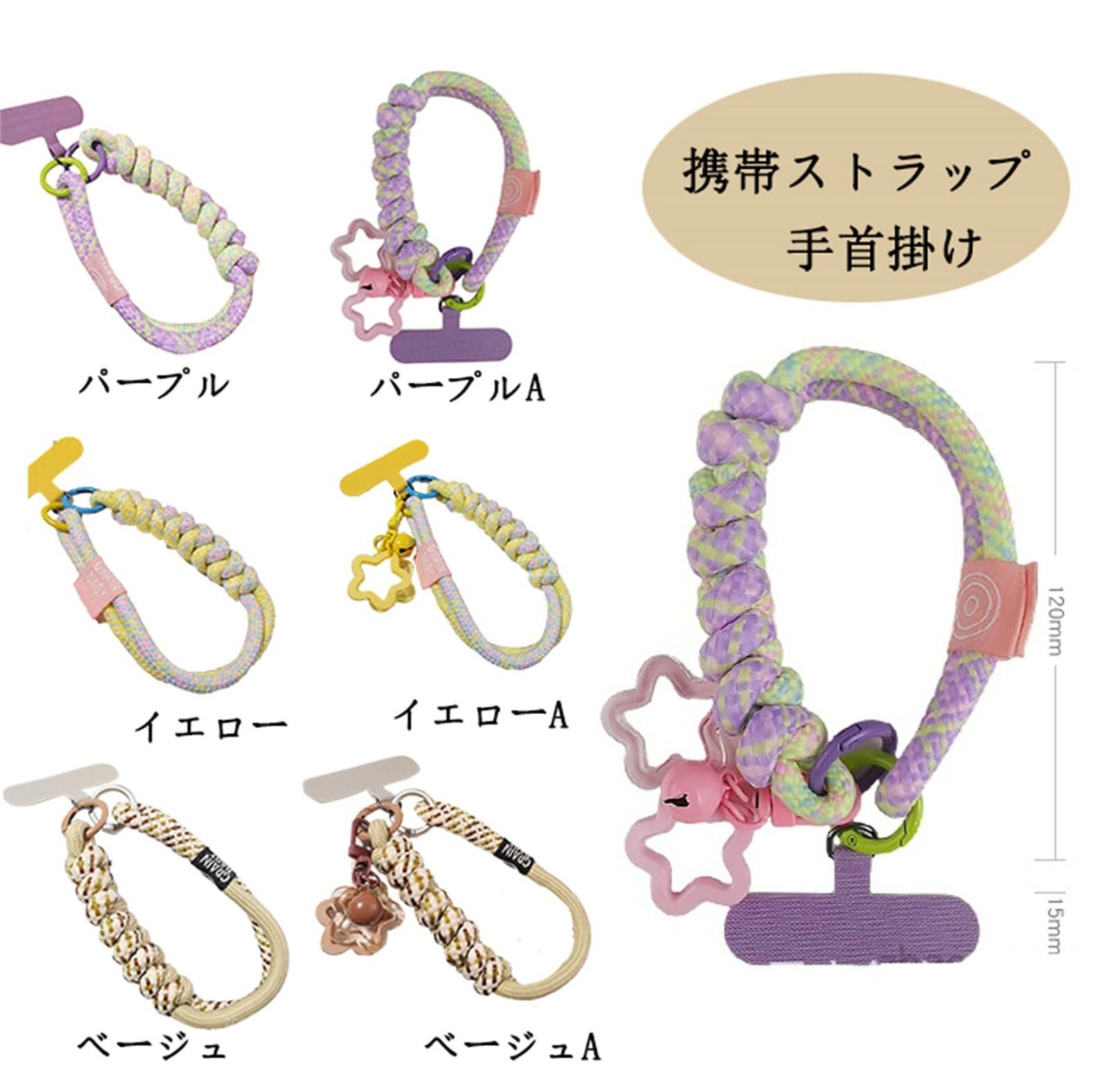 PTORGE✿【落下防止二儒編み紐ストラップ】ユニバーサル手首ストラップで携帯電話の使い勝手を向上させ、すべての携帯電話ケースに対応します。