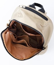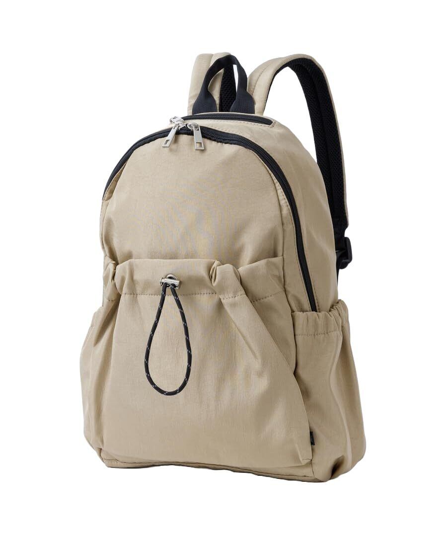 くしゅくしゅとしたフォルムが可愛い、トレンドのドロストポケットがポイントのカジュアルなシリーズ。生地はシャリっとした張り感と光沢のある撥水素材を使用しております。柔らかく軽量で、機能性もバッチリ◎正面ポケットのドロストの絞り方によってシルエットのアレンジが可能。A4サイズが収納可能で通勤・通学などに便利です。