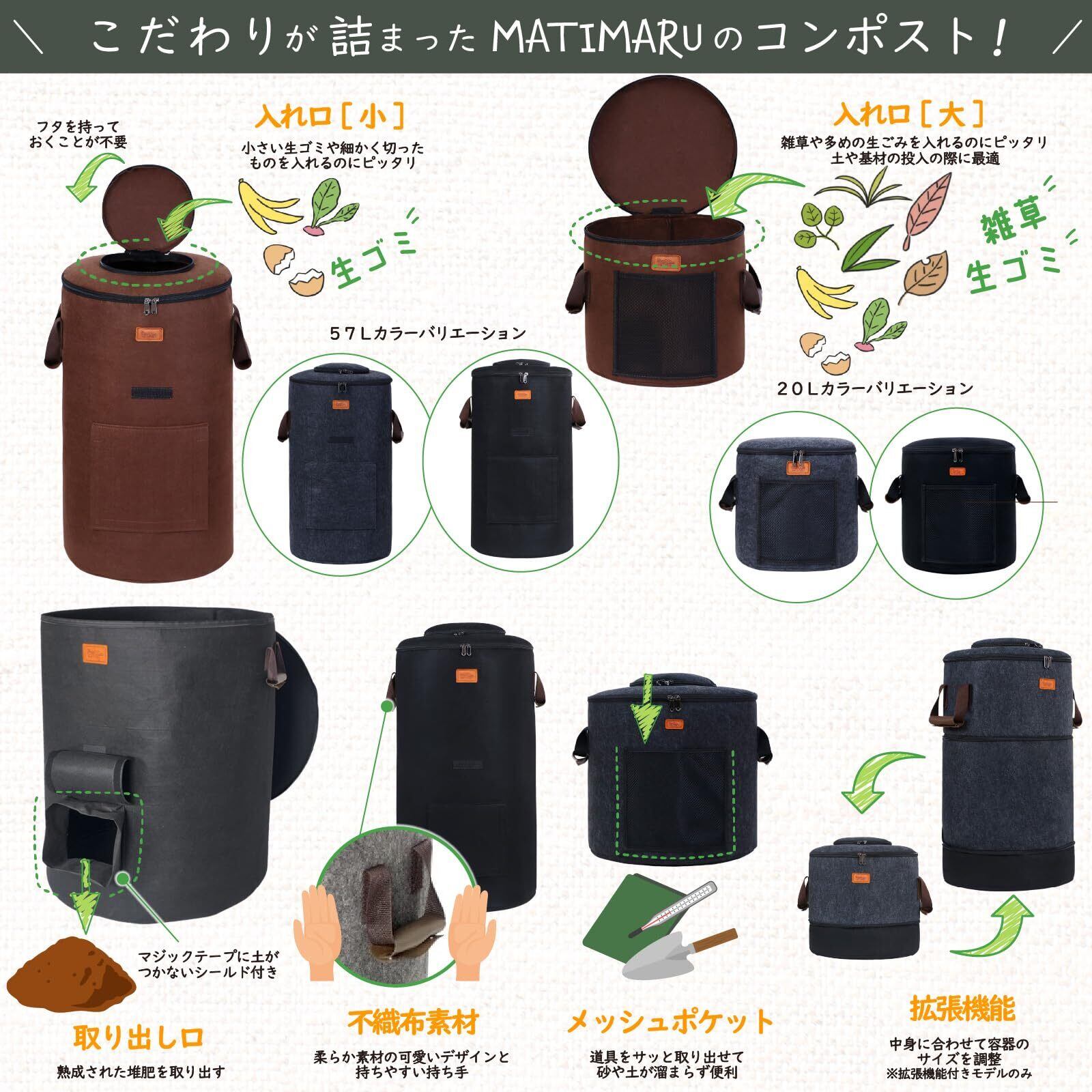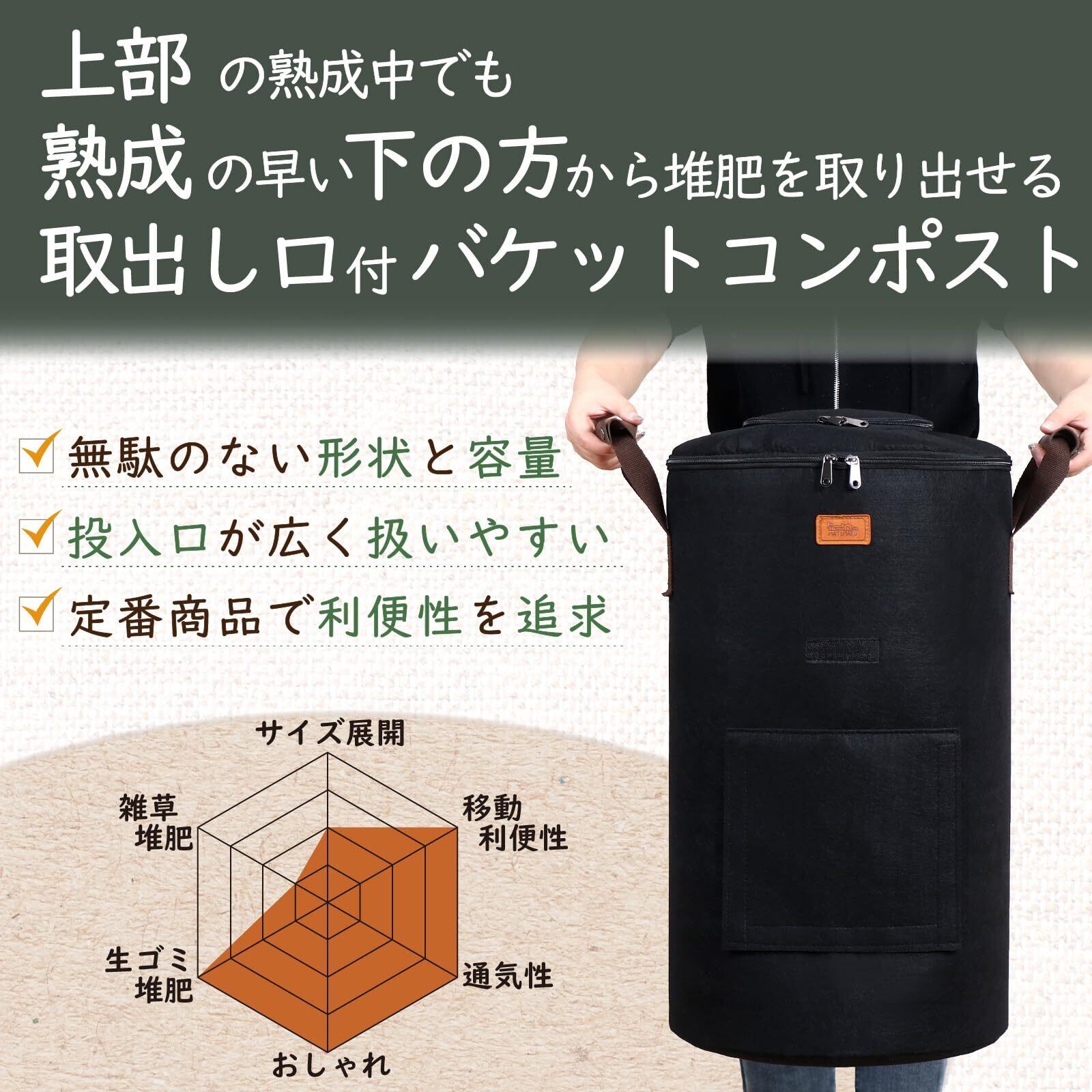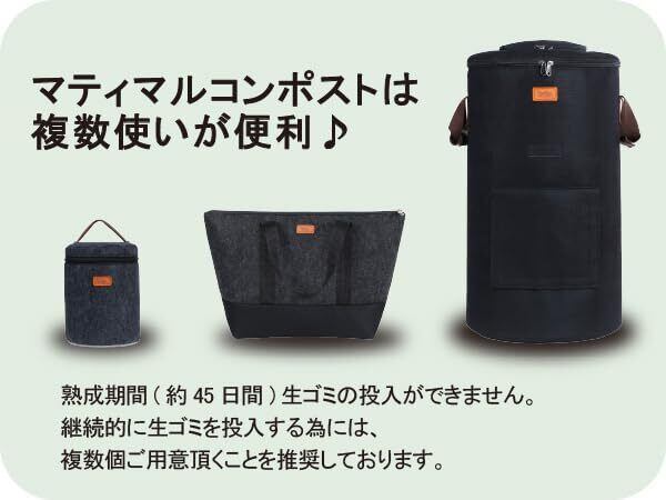 MATIMARU コンポスト バッグ 不織布 (Lサイズ 57L Black,説明書) 家庭用 屋外 こんぽすと生ゴミ処理 肥料 堆肥 コンポスター compost bin カーメン君 コンポストバッグ 発酵促進剤 キエーロ 生ゴミ処理機 生ごみ処理機