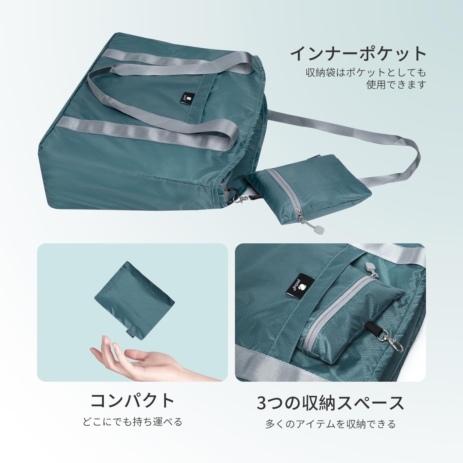 【折りたたみ可能で持ち運びに便利】コンパクトに収納可能。折りたたんだ時のサイズ:17.5×14.5cm、広げた時のサイズ:横幅41.5×高さ30×底マチ12cm、重量はわずか123.5gです。手のひらサイズに折り畳むことができ、ポケットやスーツケースに簡単に収まり、持ち運びにも便利です。