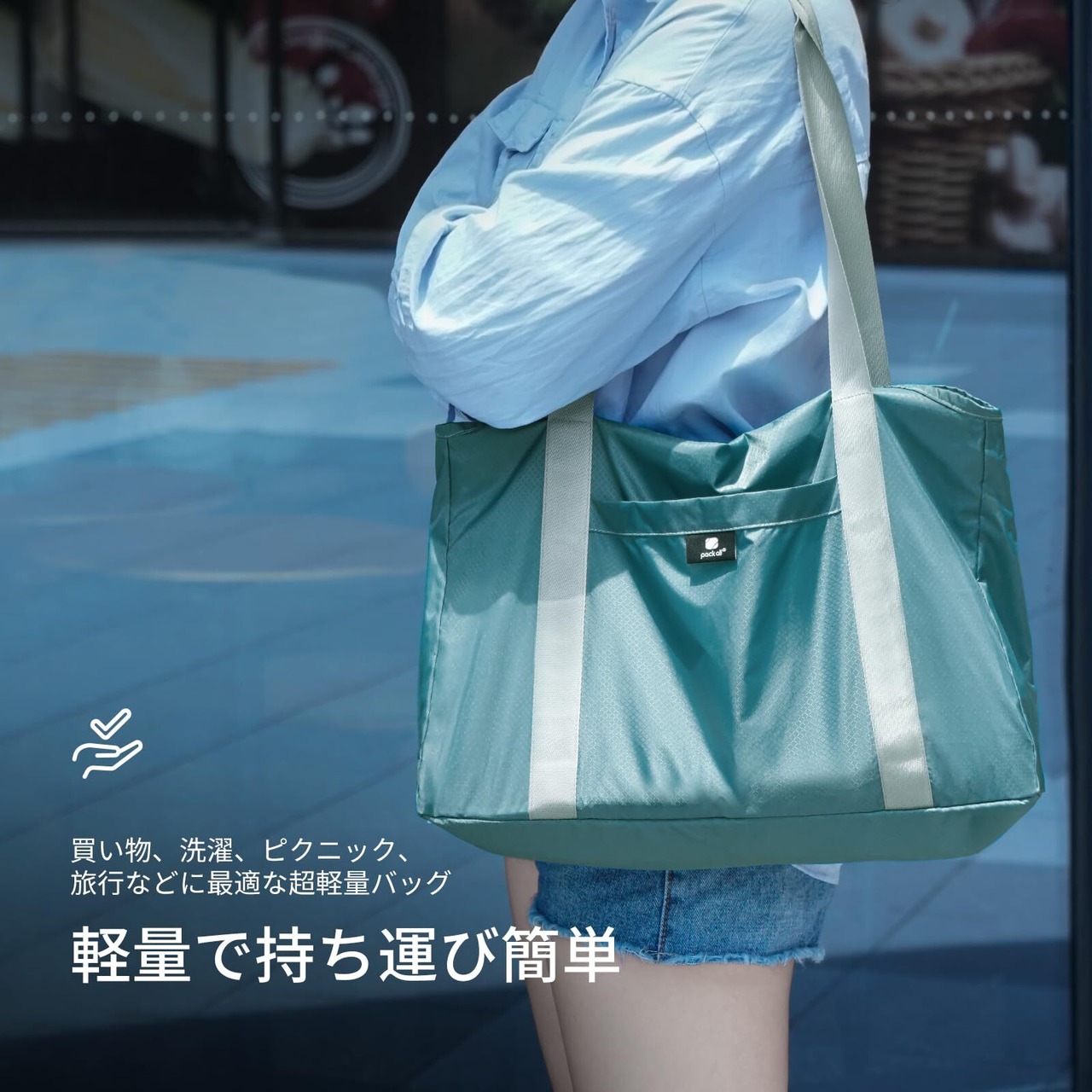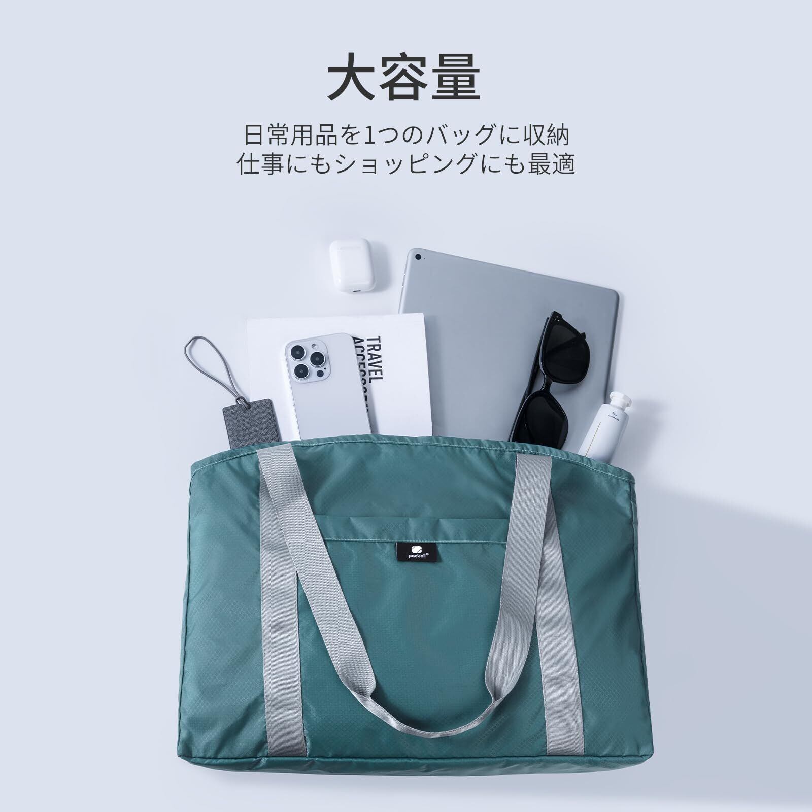 [pack all] エコバッグ 折りたたみ 軽量 トートバッグ 撥水加工 お買い物バッグ コンパクト 大容量 ショッピングバッグ マイバッグ サブバッグ スクール コンビニ スーパー