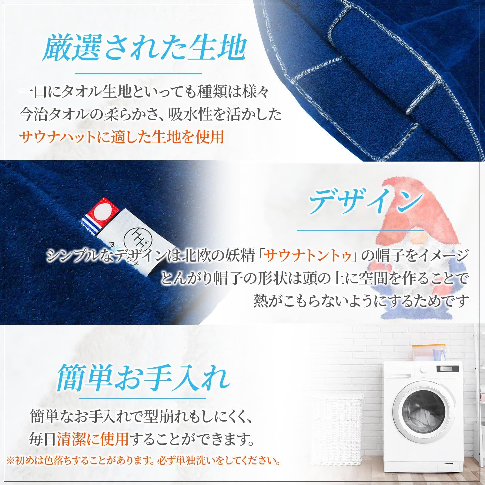 柔らかな今治タオル生地を使用したサウナハットは、優れた吸水性と通気性を兼ね備えています。大きめのサイズ設計で、しっかりと頭を包み込み、冷却効果を高めます。「ぜひこの『サウナハット』を手に入れて、心地よいサウナタイムを楽しんでみてはいかがでしょうか!」