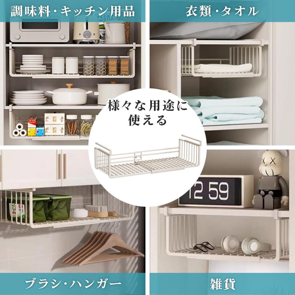 伸縮式の設計により、戸棚の下に簡単に取り付けられ、無駄な空間を有効活用できます。調理器具や文房具など、あらゆるアイテムを整理整頓し、スッキリとした空間を演出することができます。「ぜひこの『吊り戸棚』を手に入れて、あなたの生活空間をもっと快適にしてみてはいかがでしょうか!」