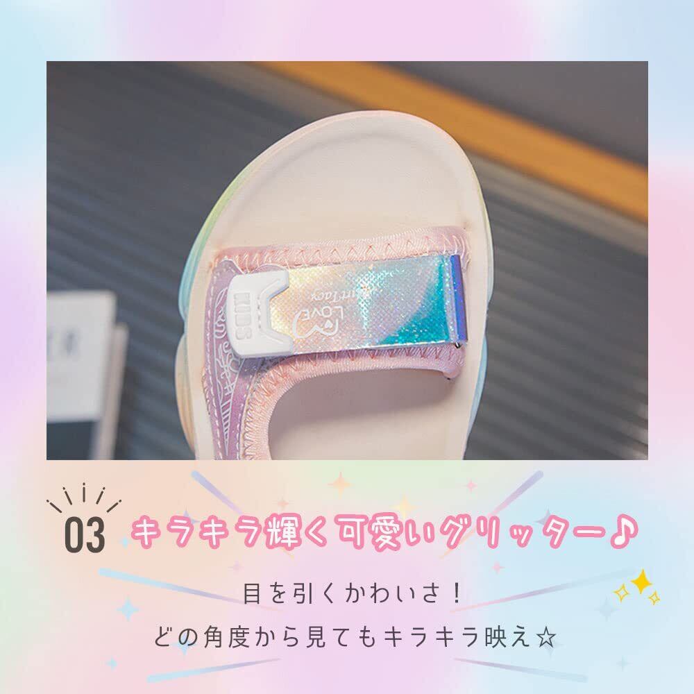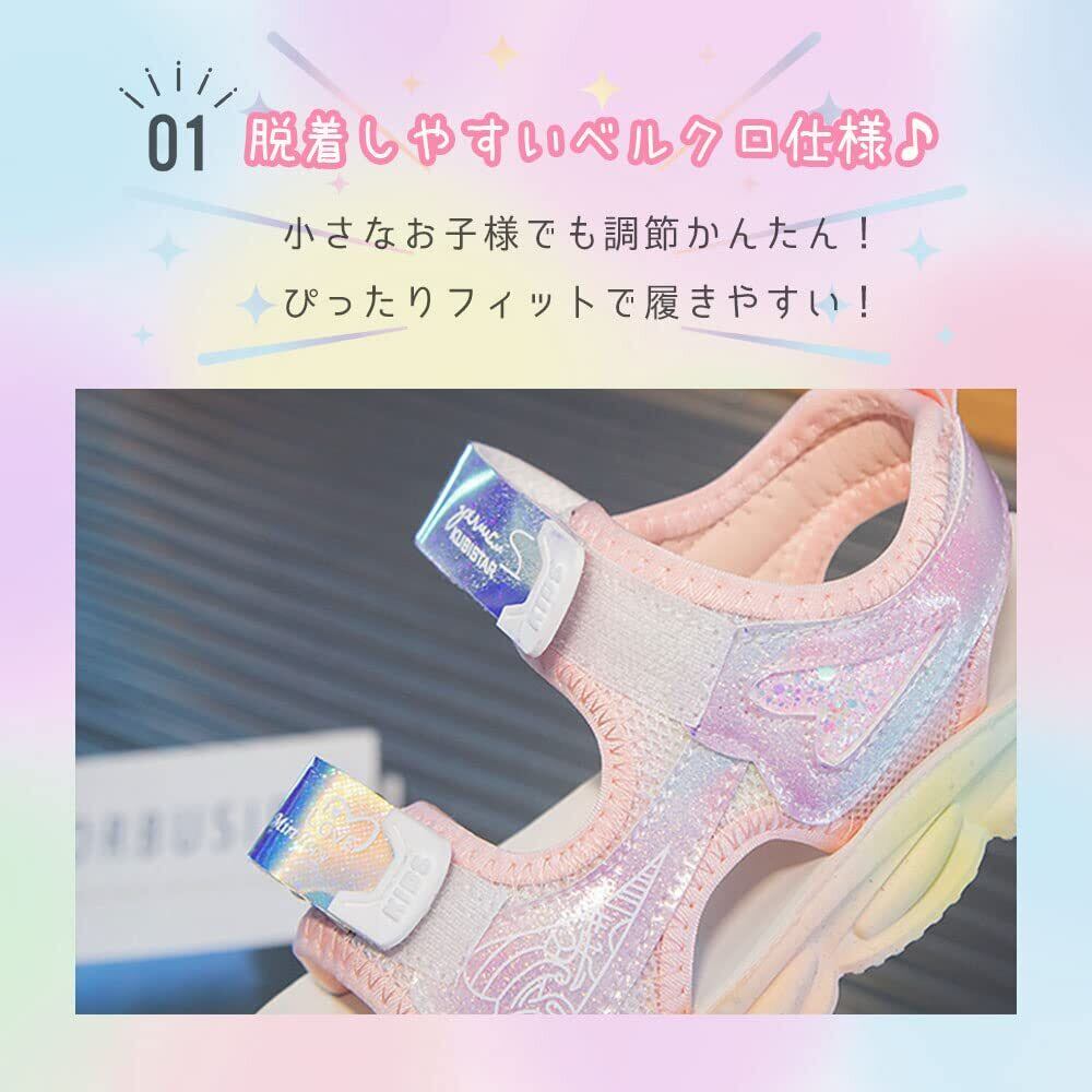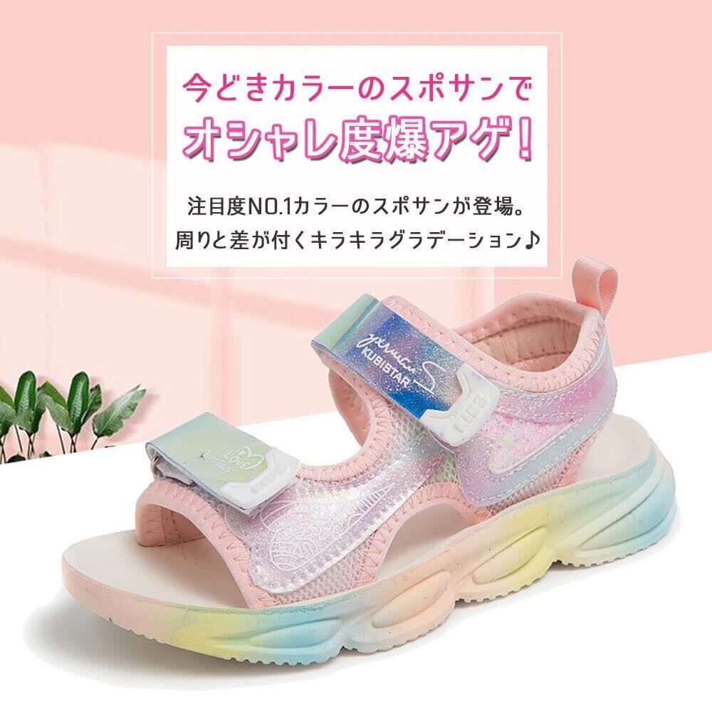 [B-TOPAZ] サンダル スポーツサンダル キッズ 女の子 ガールズ 韓国風 キッズ ジュニア 子供 子ども 子ども靴 スポサン 軽量 かわいい おしゃれ トレンド グラデーション グリッター パープル/ピンク アウトドア 海 プール 夏