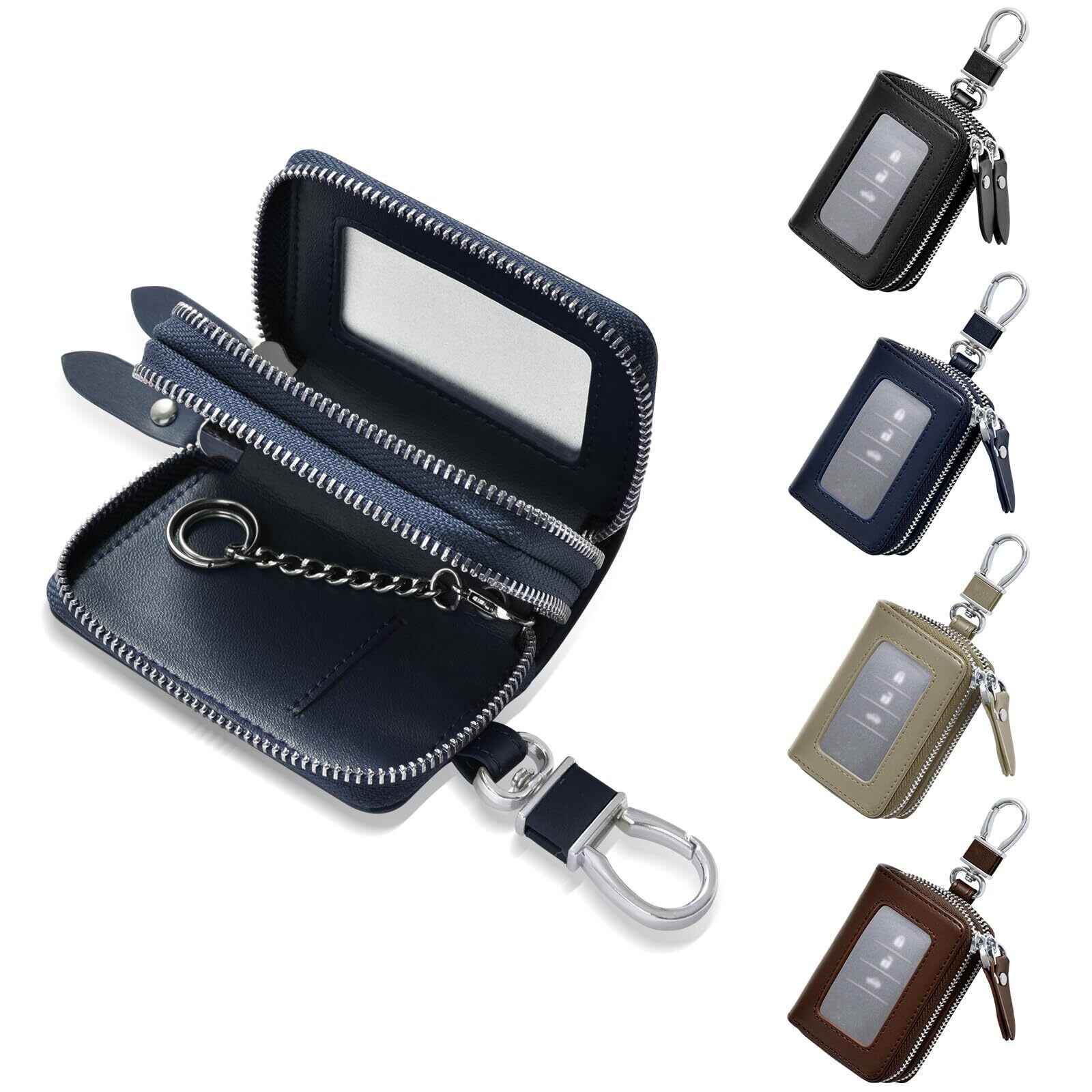 【新春セール】[YooFa] 本革 スマートキーケース 2個収納 メンズ レディース ダブルファスナー 車キーケース 牛革 通勤 おしゃれ クリア窓付き 鍵 カラビナ付き レザー スマートキー対応 カバー型 プレゼント | nico3588