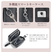 【透明な窓付きと360度回転カラビナ】❶一つの仕切りには透明な窓があり、スマートキーを取り出さずに簡単に操作できます。窓は磨りクリア素材で作られており、見た目にも上品さを演出します。❷ 【チェーン付きリング】ケース内にスマートキーを繋ぎとめるチェーンを付き、万が一、ファスナーを閉め忘れた時に、キーの落下を防ぎできます。❸カラビナ付き、ラウンドファスナーで大きく開き、鍵の出し入れがスムーズです。軽量で手のひらに収まる、ほどよいサイズ感の使いやすいキーケースです。360度回転する便利なカラビナ付きで、ズボンやバッグなどにつけることができます。