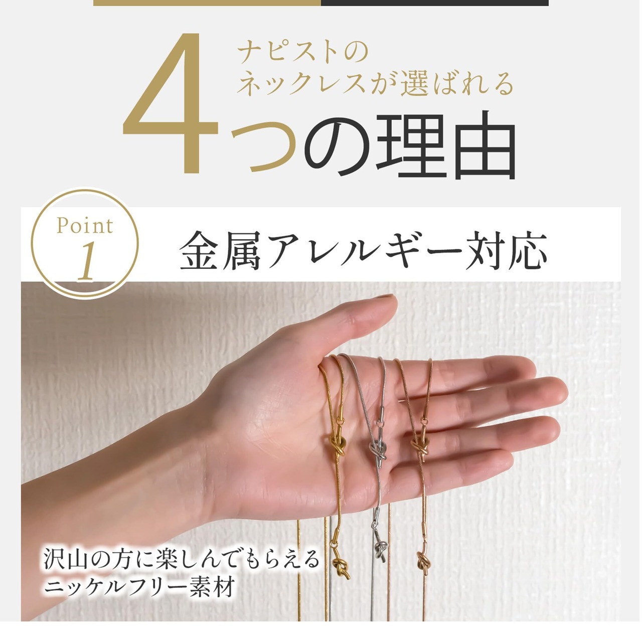 「この『【人気商品】【Napist】ネックレス』は、洗練されたデザインと機能性を兼ね備えた美しいロングネックレスです!金属アレルギーに配慮されたサージカルステンレス製で、安心して毎日使用できるアクセサリーです。」