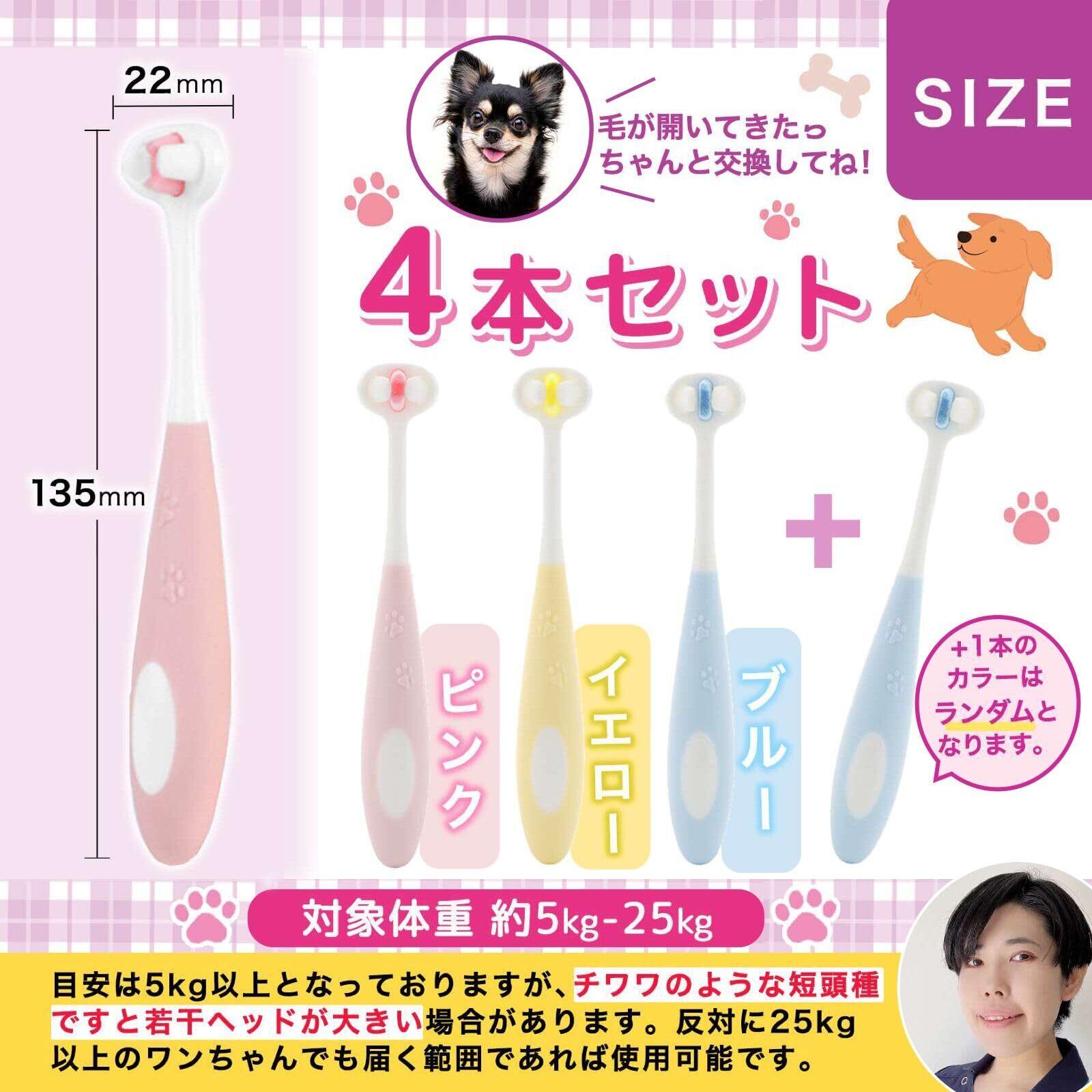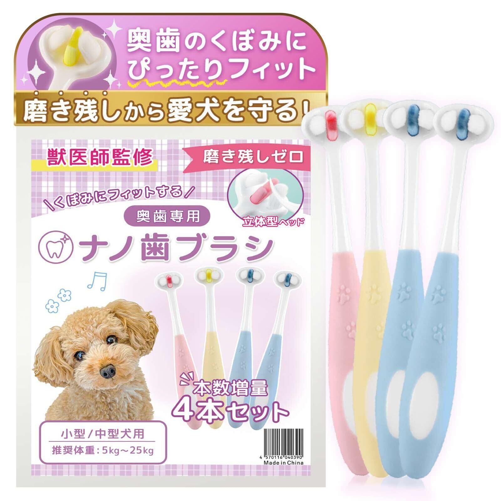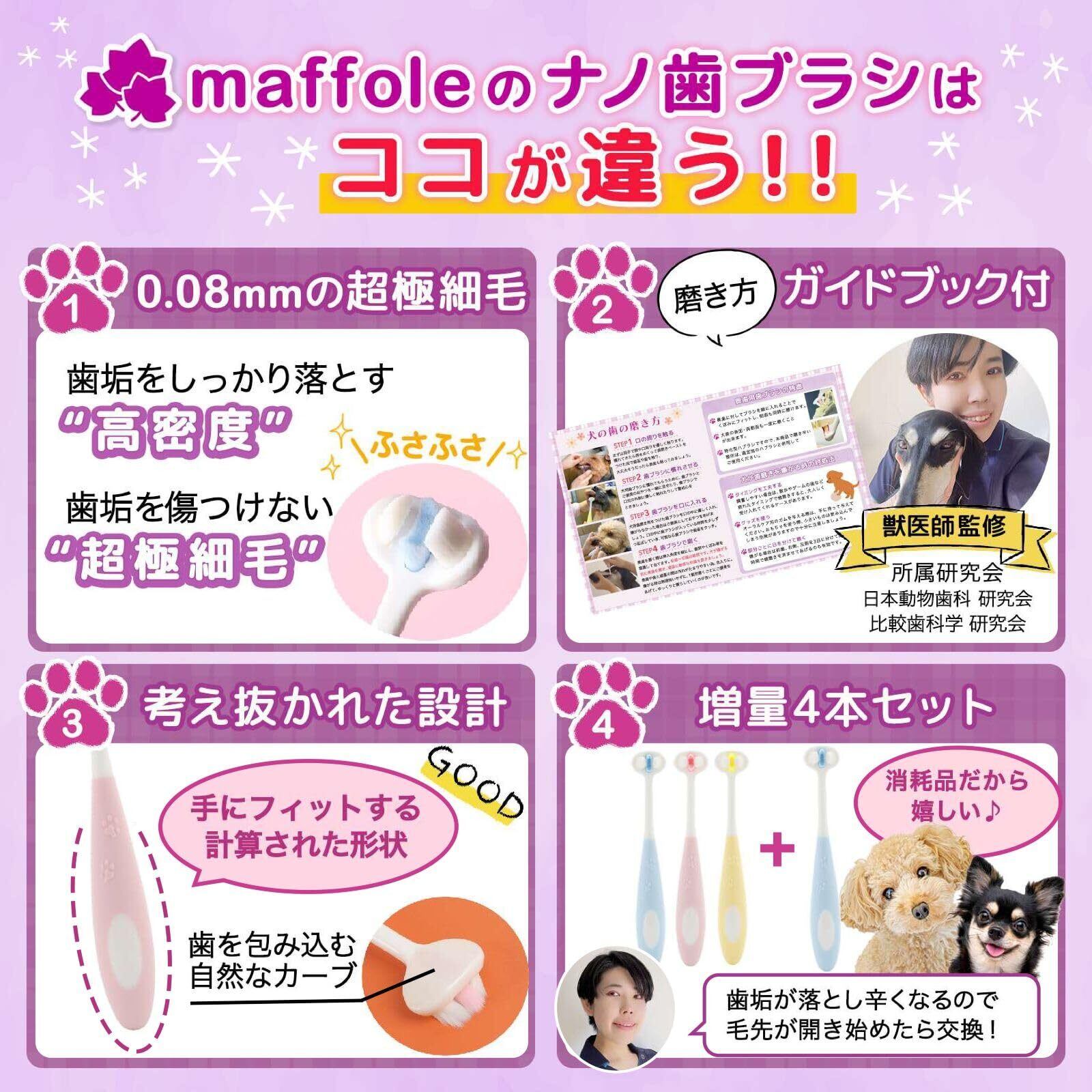 犬 歯ブラシ 小型犬 【小動物歯科研究医が監修x1万本の極細毛】 4本セット 歯磨きガイド付 奥歯用 抗菌素材 maffole