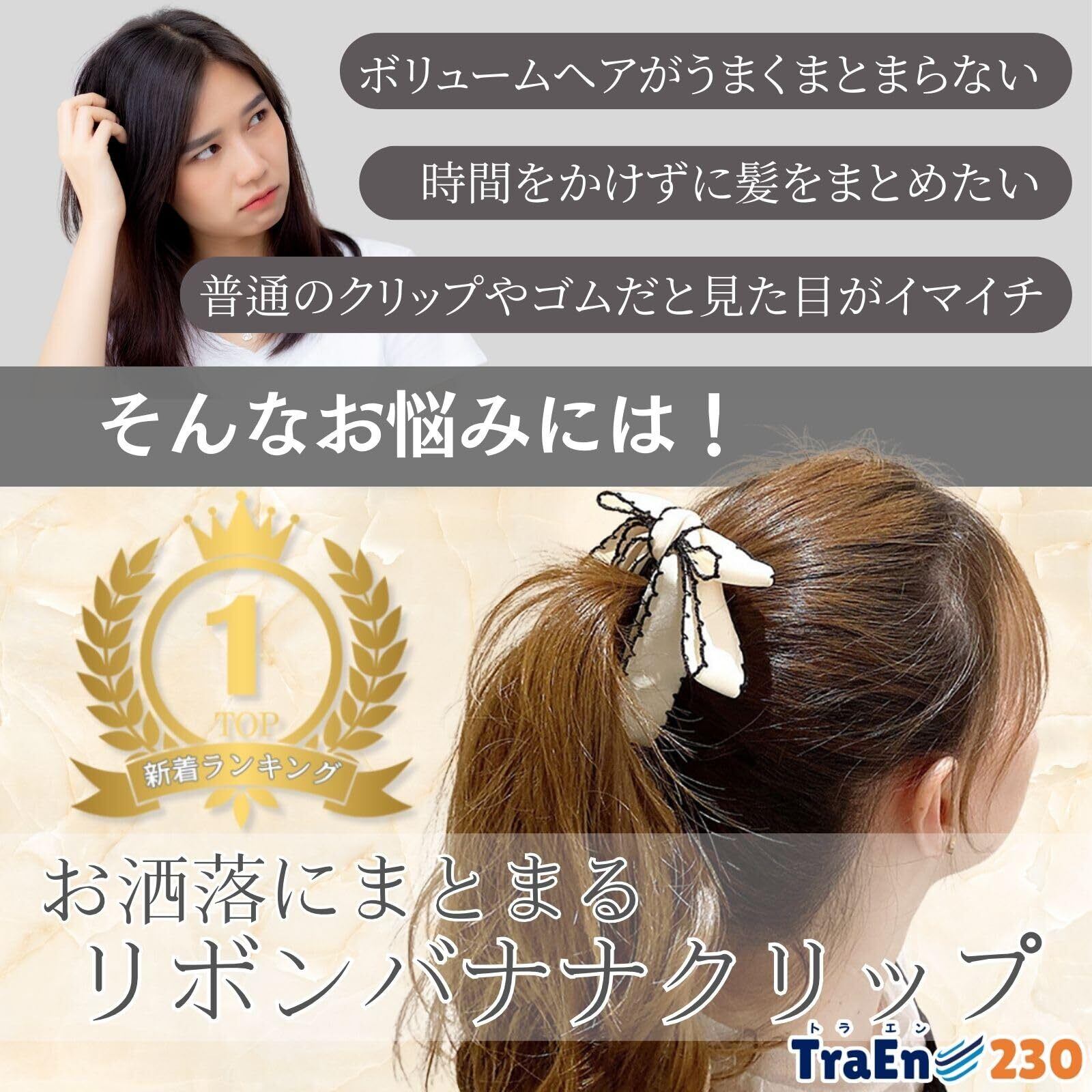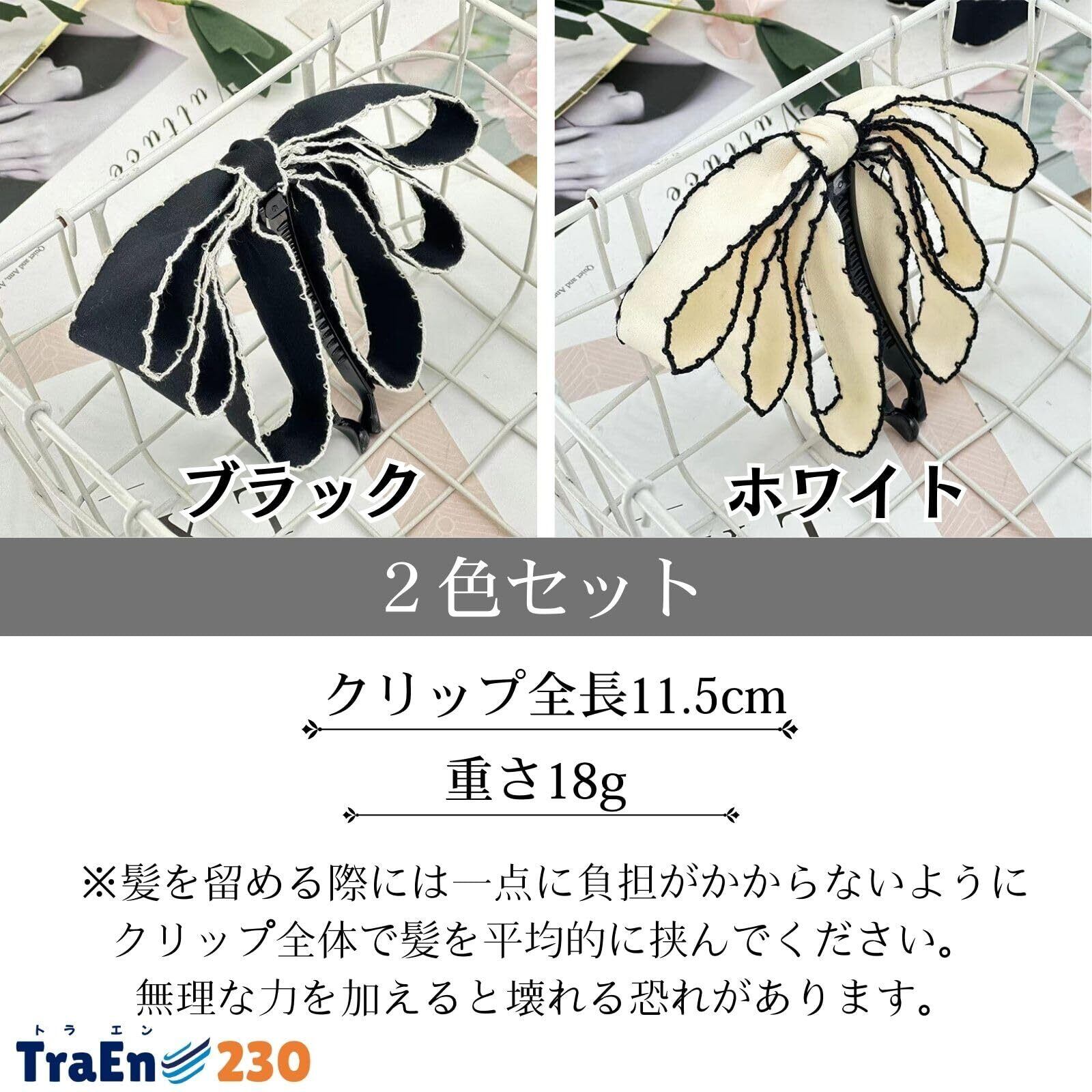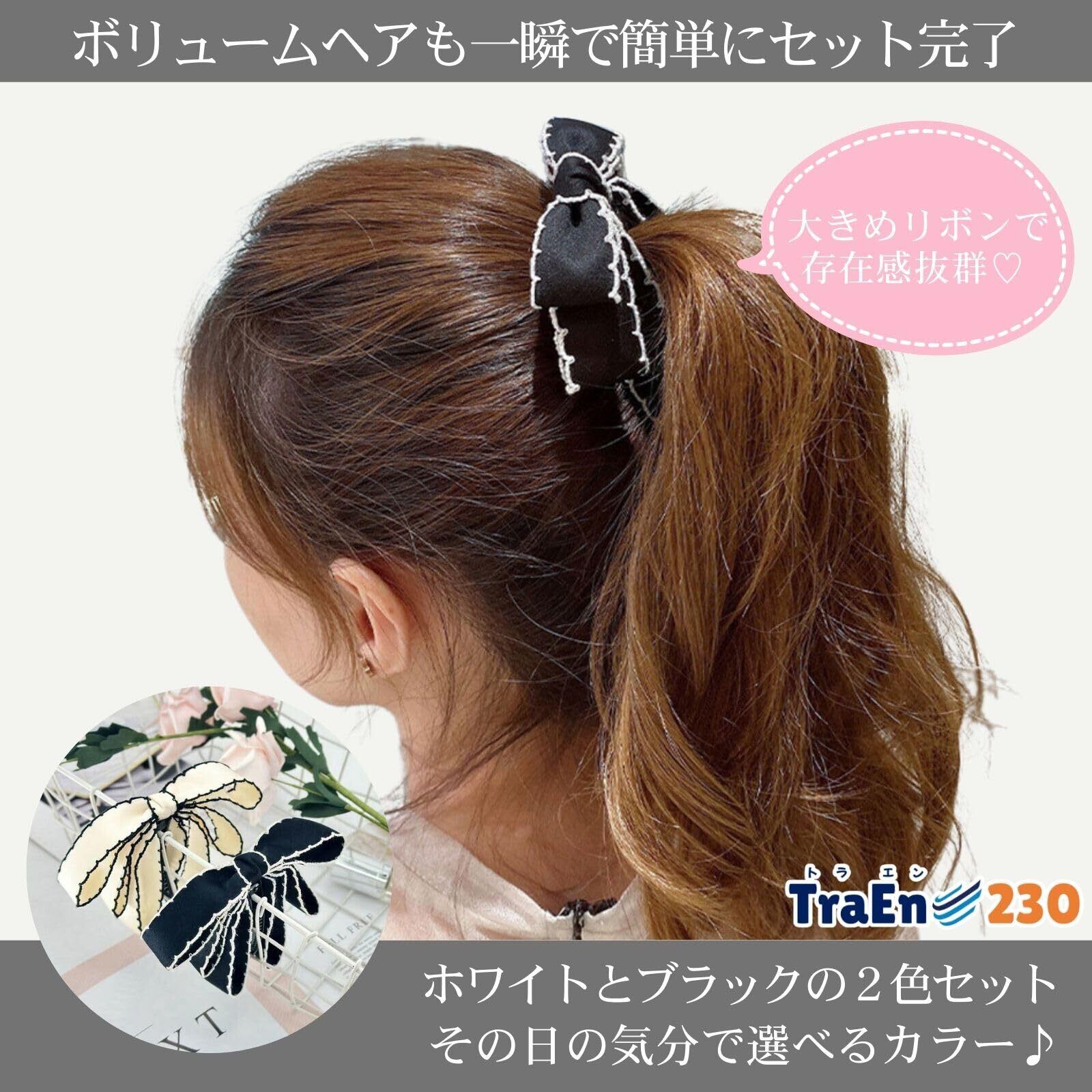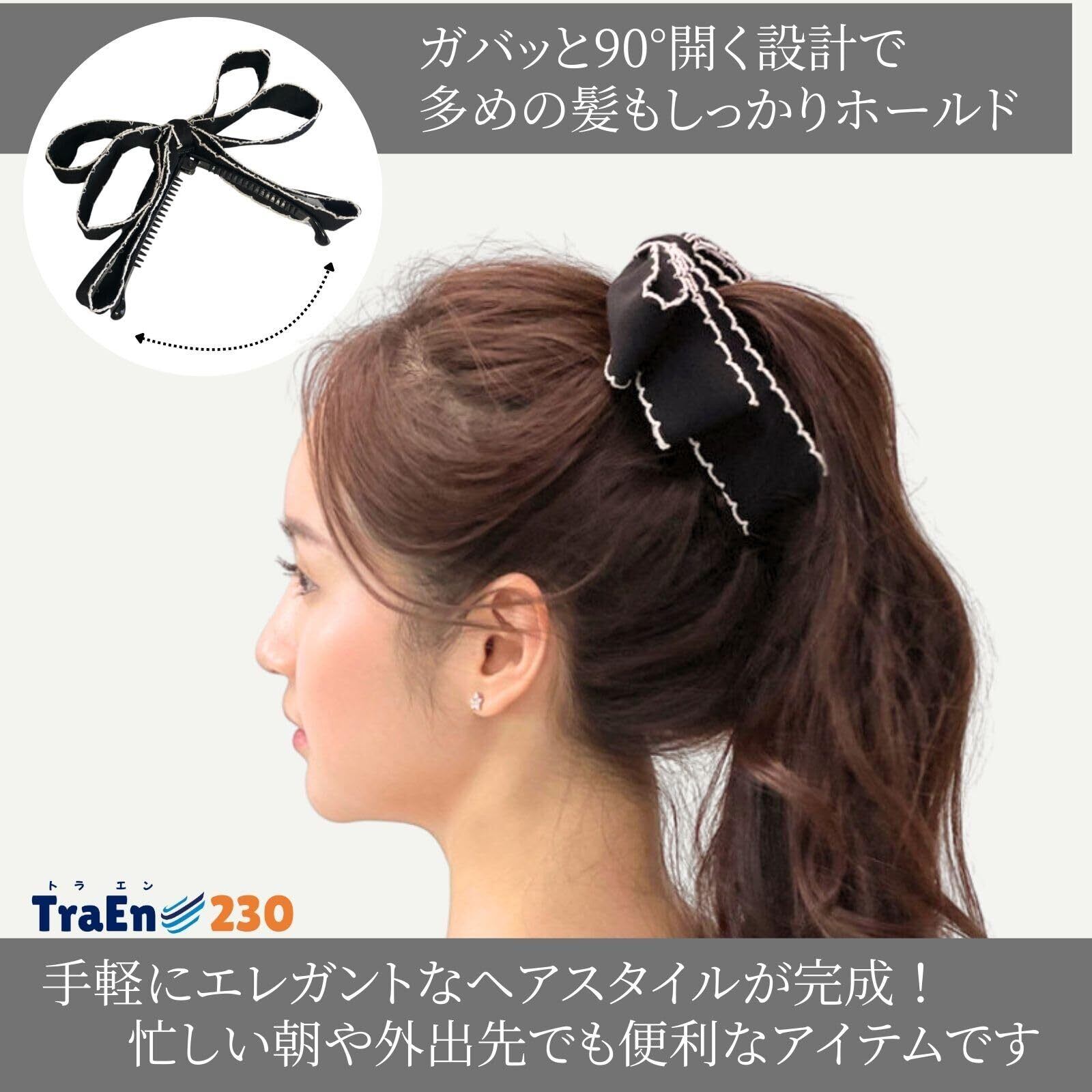 TraEn230 バナナクリップ 大きめ 毛量多い ヘアクリップ リボン バナナ クリップ ヘアクリップ しっかりとまる ヘアアクセ 大きいリボン 髪飾り 髪留め まとめ髪 2色セット