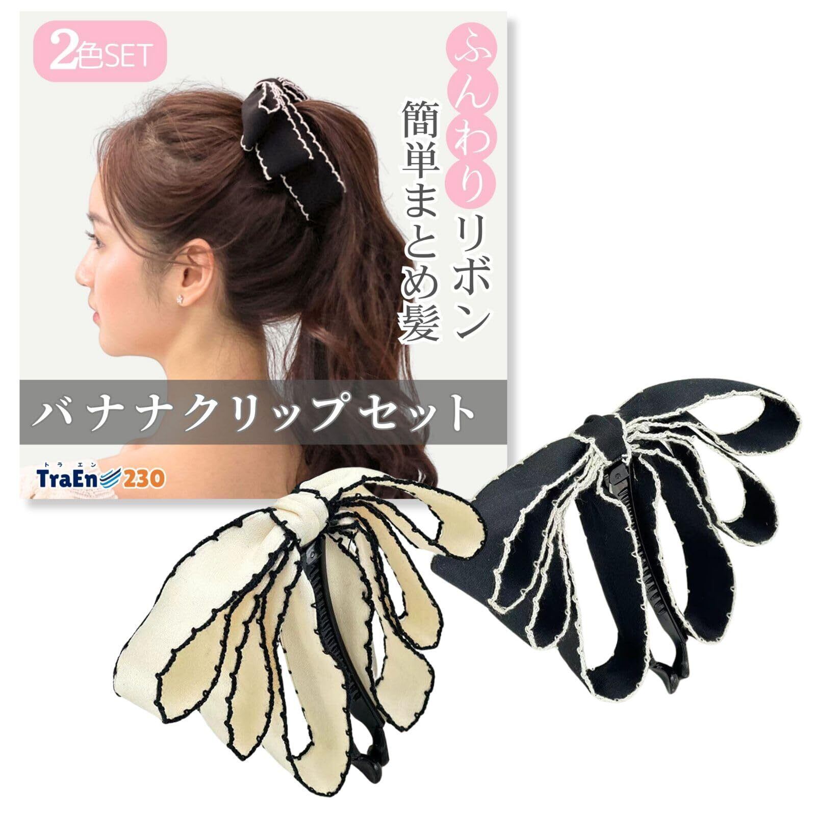 【特価商品】TraEn230 バナナクリップ 大きめ 毛量多い ヘアクリップ リボン バナナ クリップ ヘアクリップ しっかりとまる ヘアアクセ 大きいリボン 髪飾り 髪留め まとめ髪 2色セット