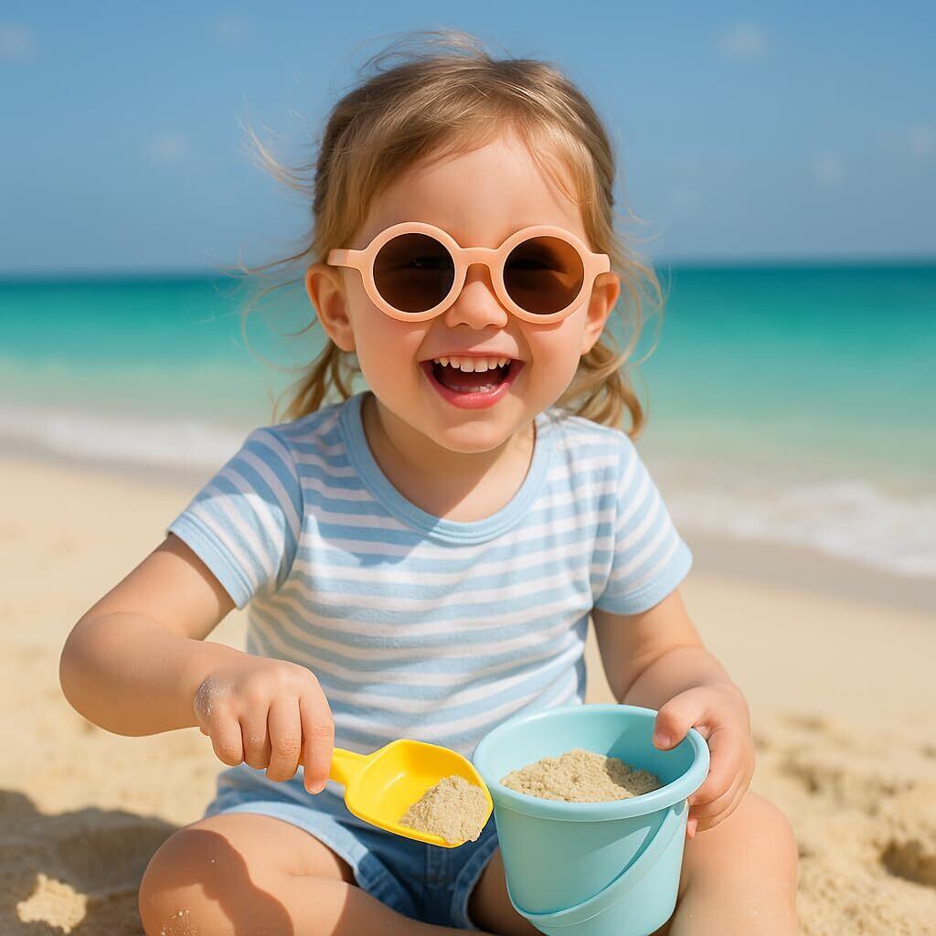 大切な目を守る UVカット & 偏光レンズ 強い日差しから赤ちゃんの目を守る高性能レンズ 紫外線をしっかりカットし、まぶしさを軽減します