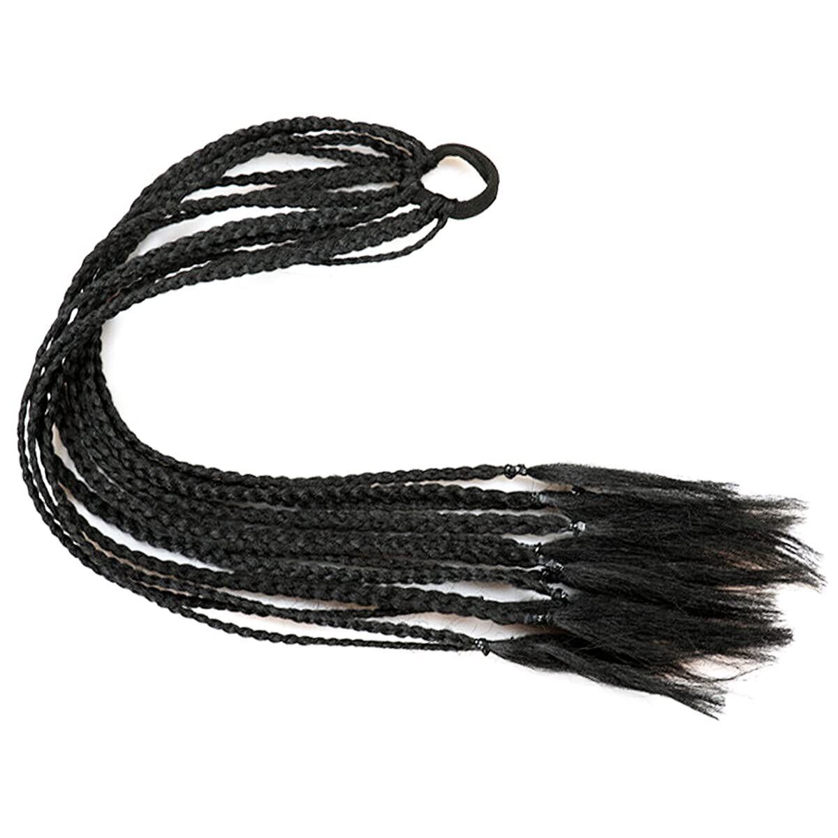 [TefuRe] 三つ編み エクステ ポニーテール つけ毛 キッズ ダンス ゴム で簡単装着 ブレイズエクステ 動画有 黒 ブラック Q37-1