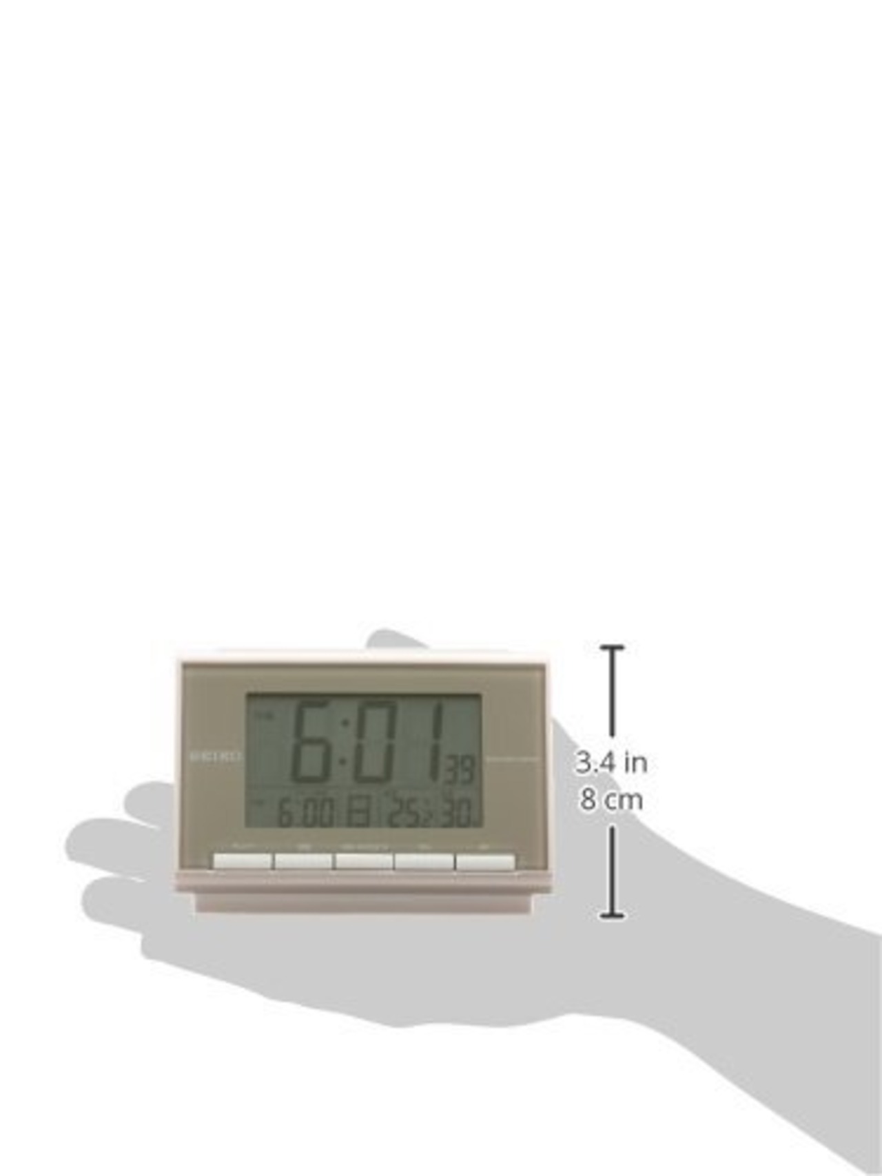 温度・湿度表示機能がついたリーズナブルな目ざまし時計、前面の操作ボタンで使いやすさも抜群です。
