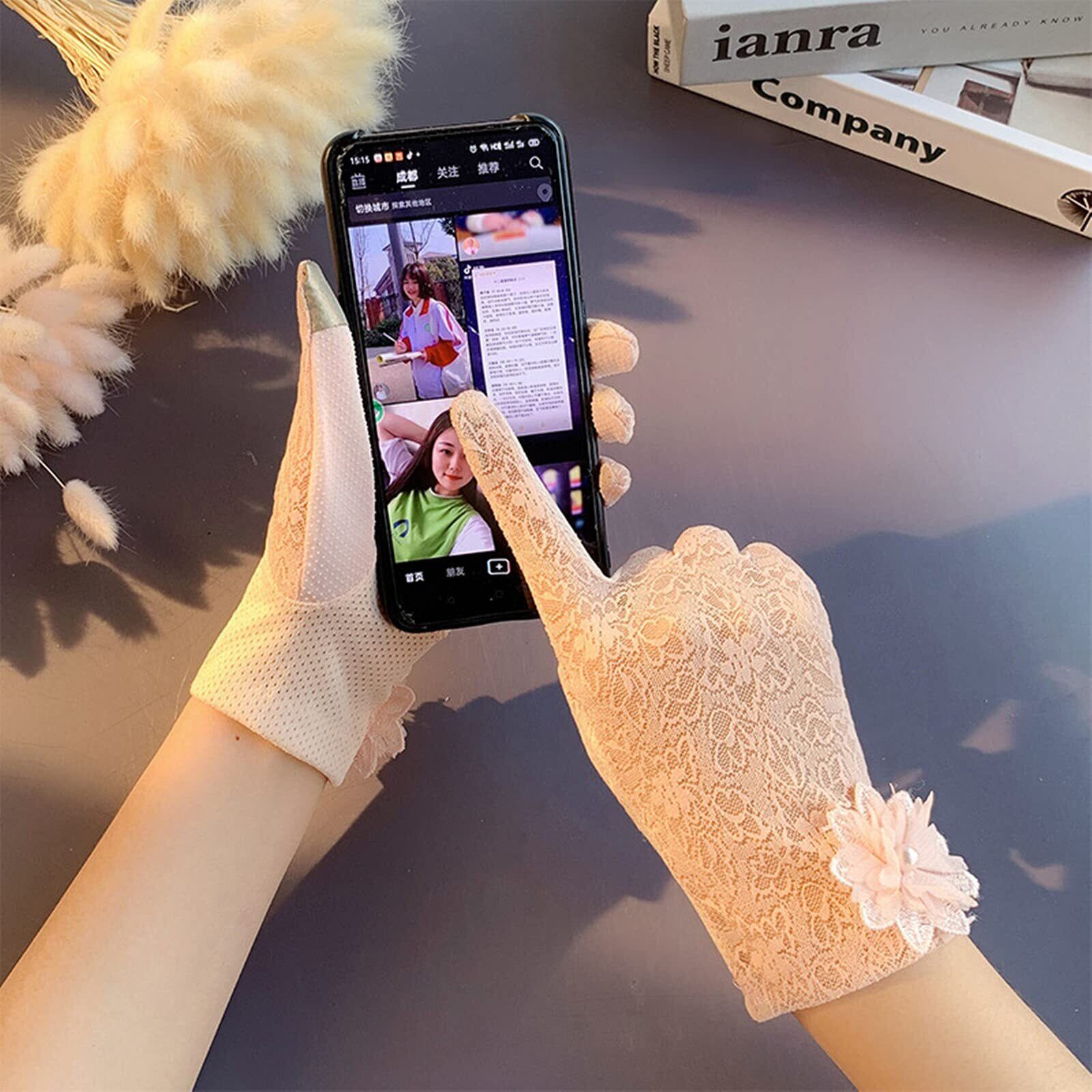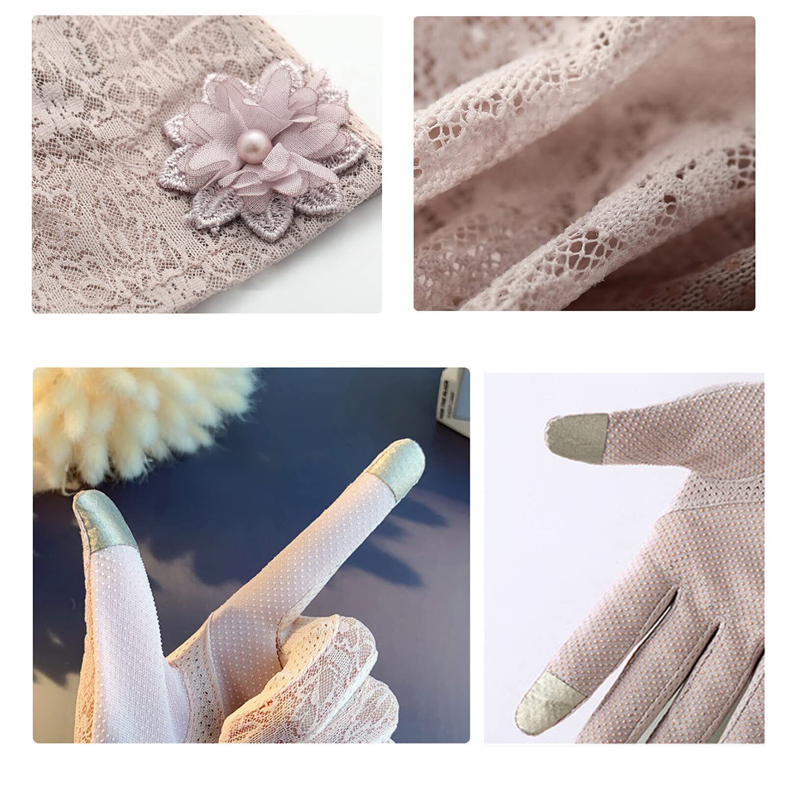 [Kingsie] レース 手袋 レディース 夏 グローブ 花柄 薄手 メッシュ スマホ対応 滑り止め付 UVカット 日焼け防止 紫外線対策 結婚式 運転用 春夏用