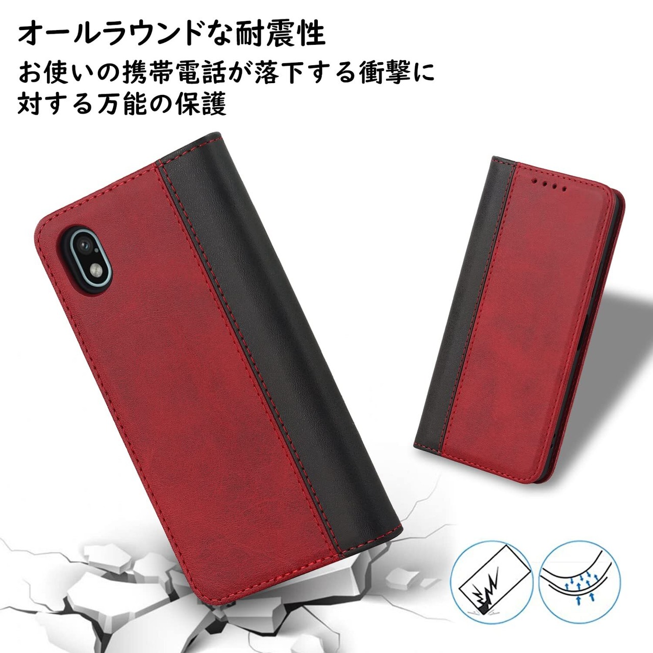 【数量限定】Havaya Xperia Ace III ケース SO-53C ケース Xperia Ace IIIカバーケース 手帳型 耐衝撃 SOG08 A203SO docomo SONY ソニー エクスペリア エース3 第3世代 カバー au マグネット式 SoftBank カード収納 レザー-レッド+ブラック