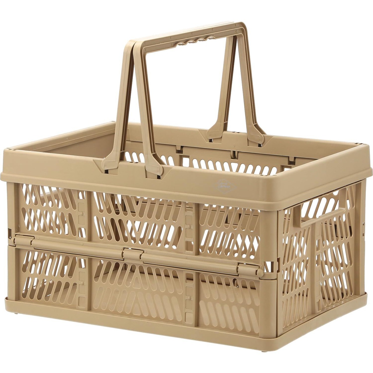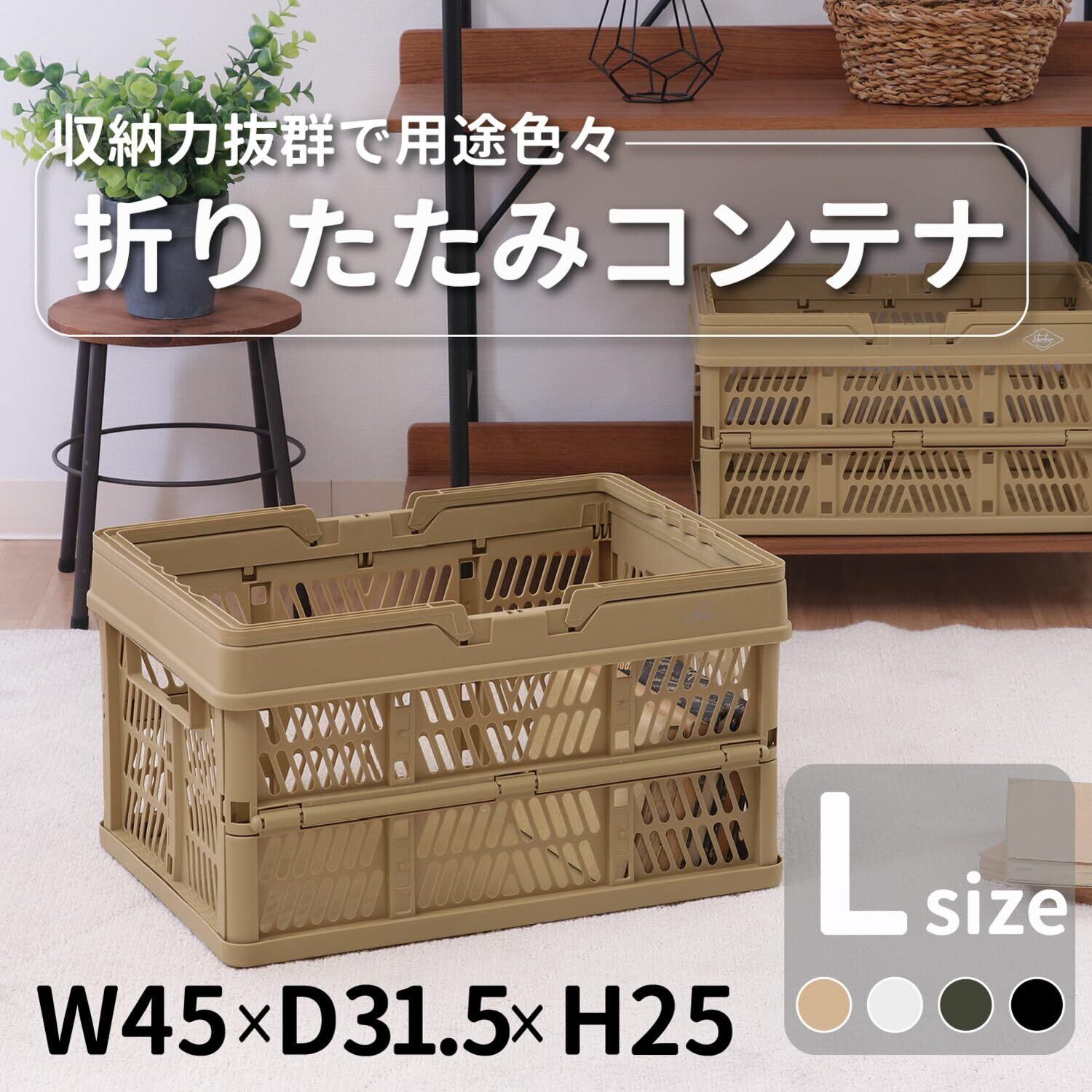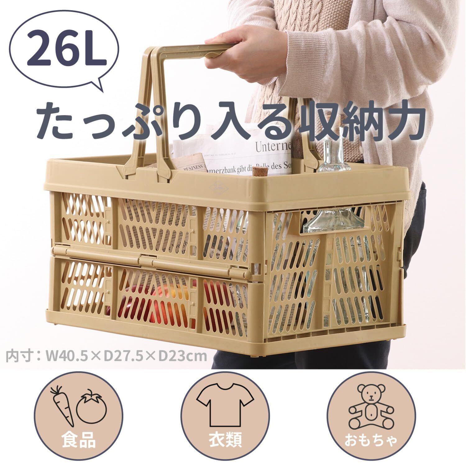 不二貿易 折りたたみ コンテナ かご 幅45×奥行31.5×高さ25㎝ ベージュ 取っ手付き 持ち運び簡単 内容量26L Lサイズ 86451