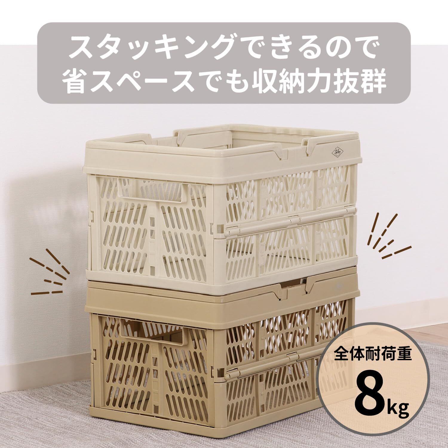 【新着商品】不二貿易 折りたたみ コンテナ かご 幅45×奥行31.5×高さ25㎝ ベージュ 取っ手付き 持ち運び簡単 内容量26L Lサイズ 86451