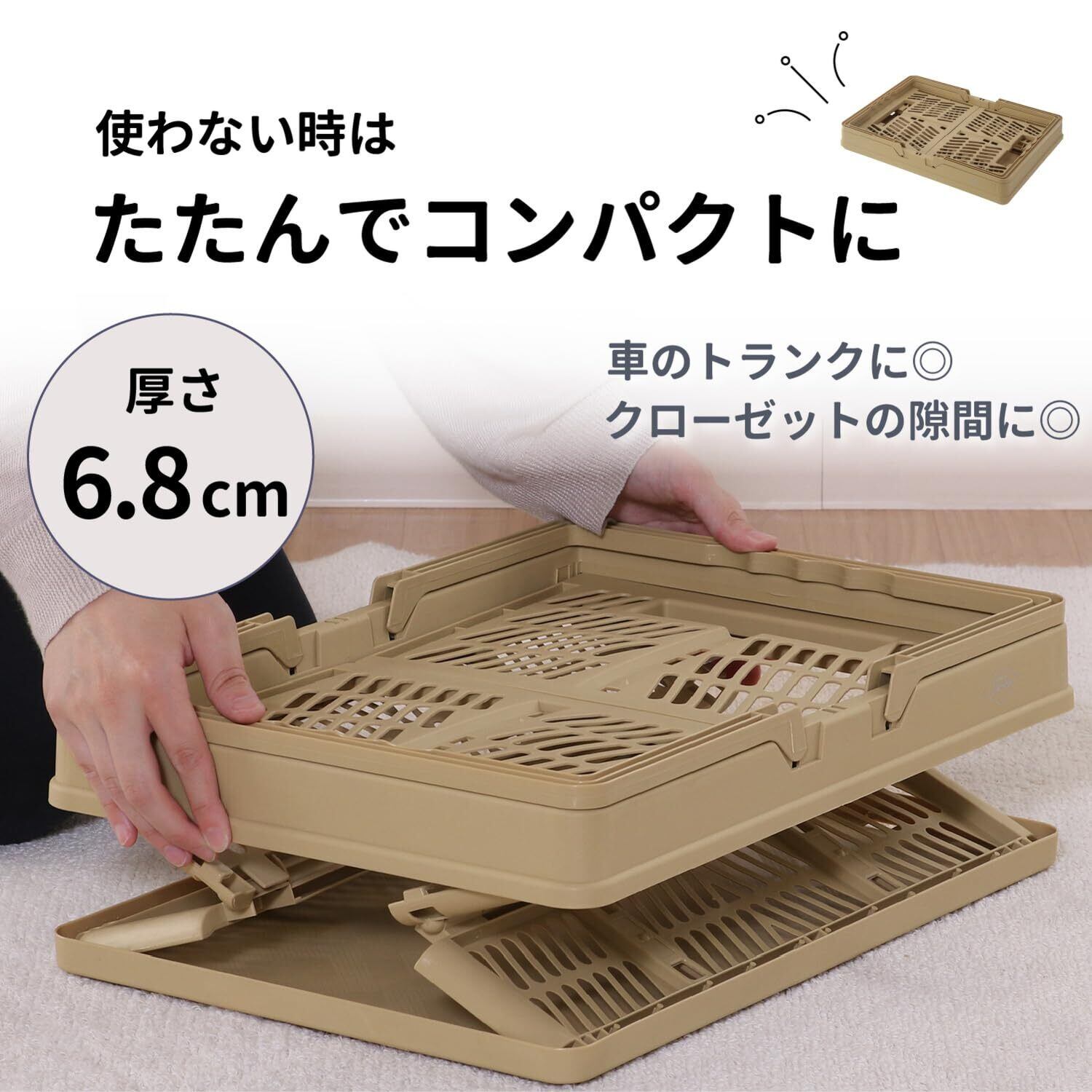 折りたたみ時サイズ:幅450×奥行315×68mm、展開時内寸:405x275x230mm