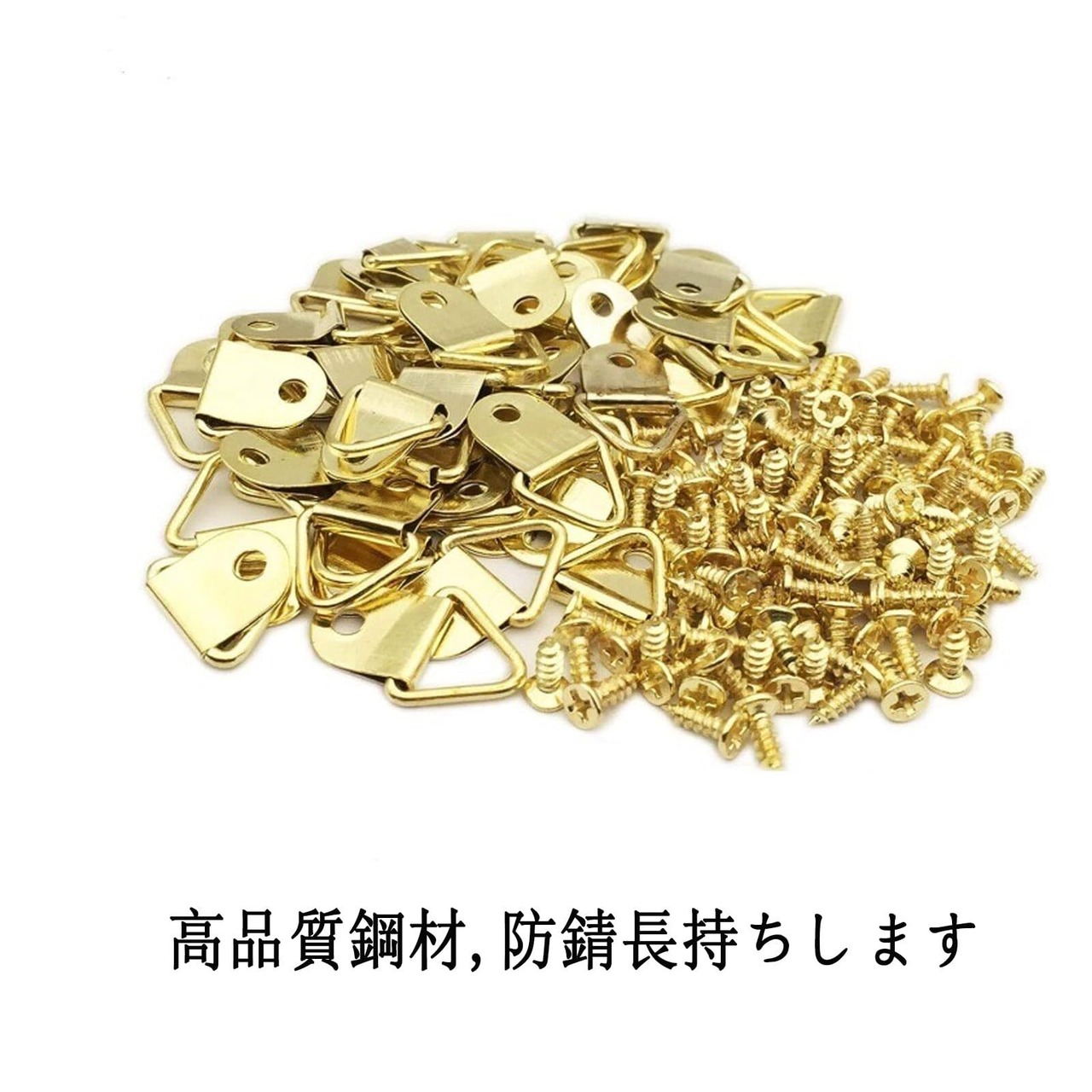 額縁吊り金具 100個 金+銀50です ネジ50枚 合計100です 高品質の金メッキ炭素鋼製、高硬度、錆びにくい、防湿、耐酸化、耐食性。