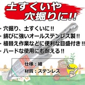 ステンレス製でサビに強く土すくいにも穴掘りにも最適