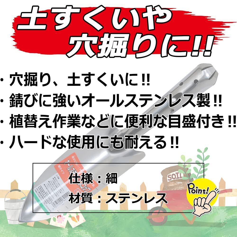 千吉 オールステンレス製 スコップ 錆びにくい 約290mm 細 移植タイプ