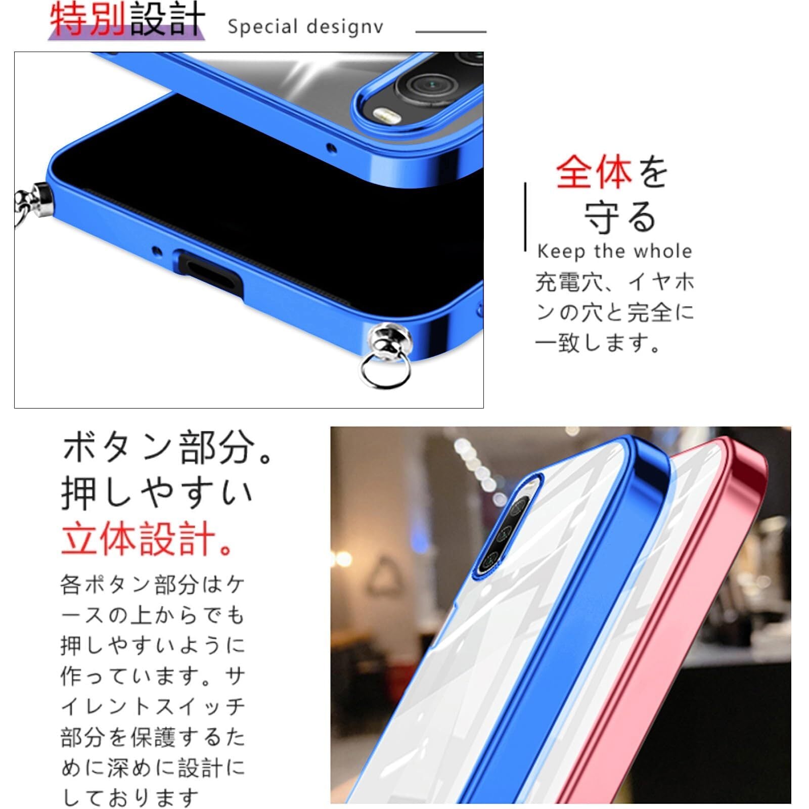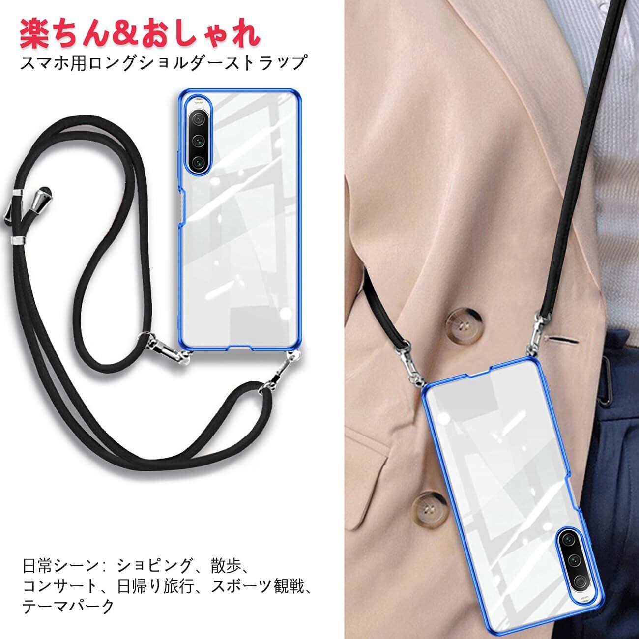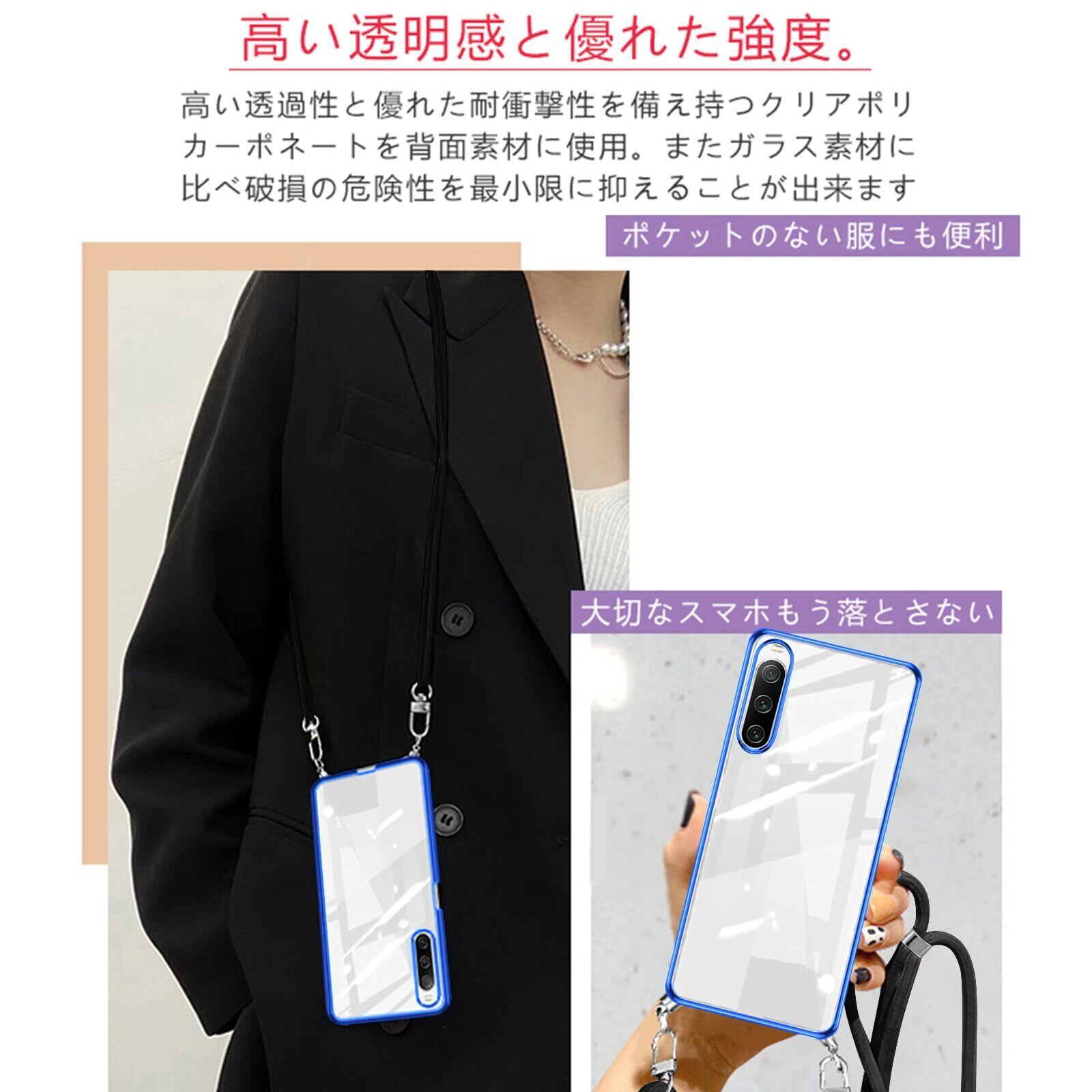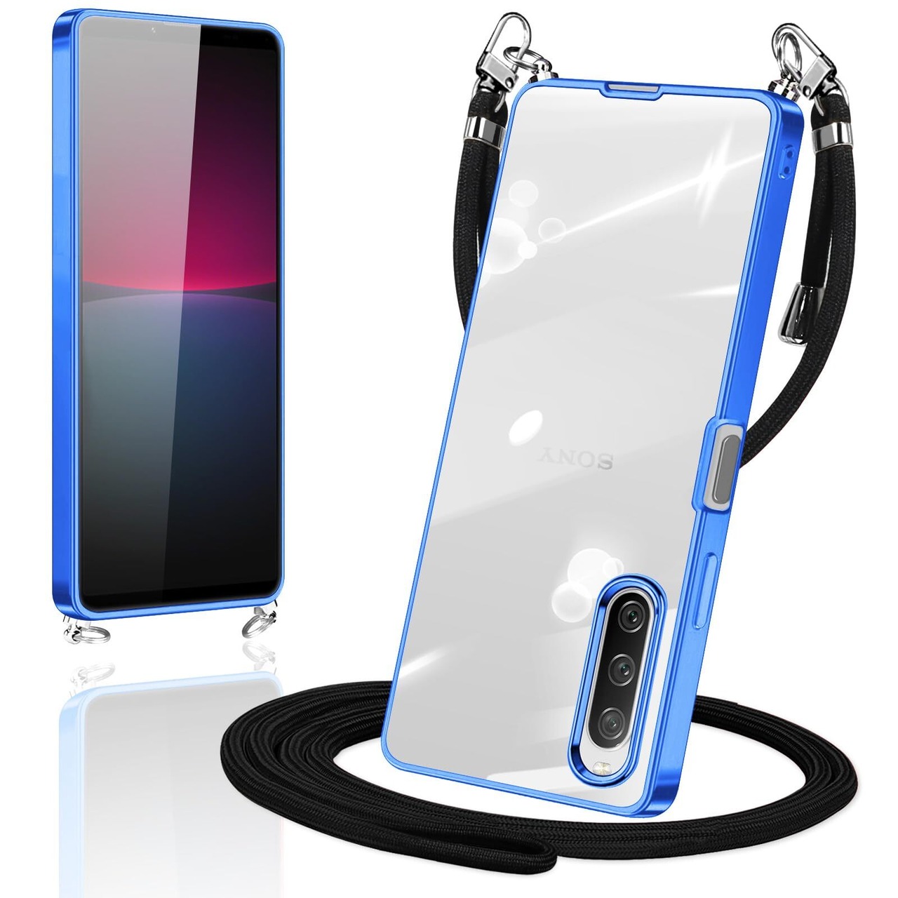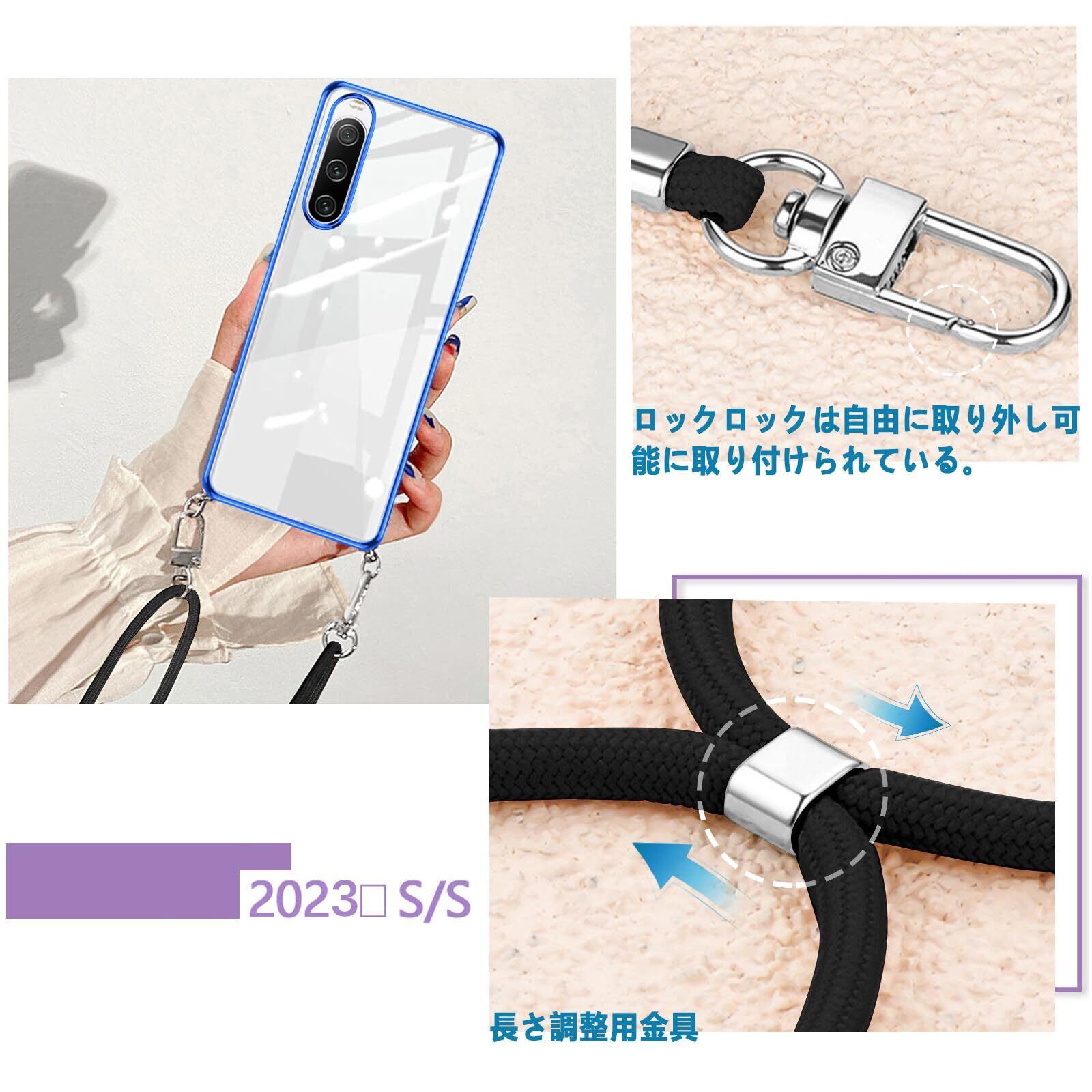 Xperia 10 IV 用の ケース ショルダー クリア TPU カバー エクスペリア10iv SO-52C SOG07 スマホケース 肩掛け 首掛け 斜めかけケース 透明 薄型 耐衝撃(ブルー)