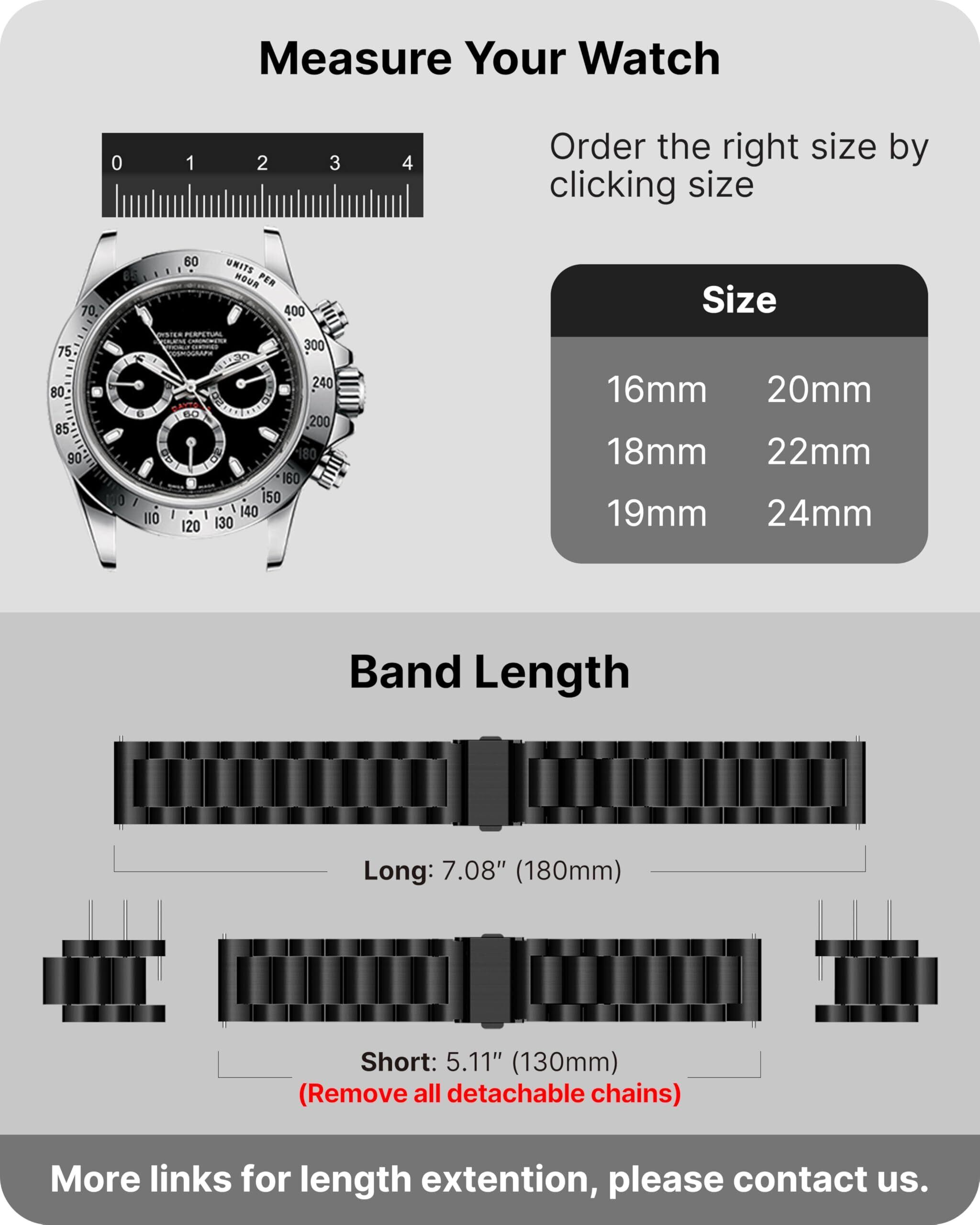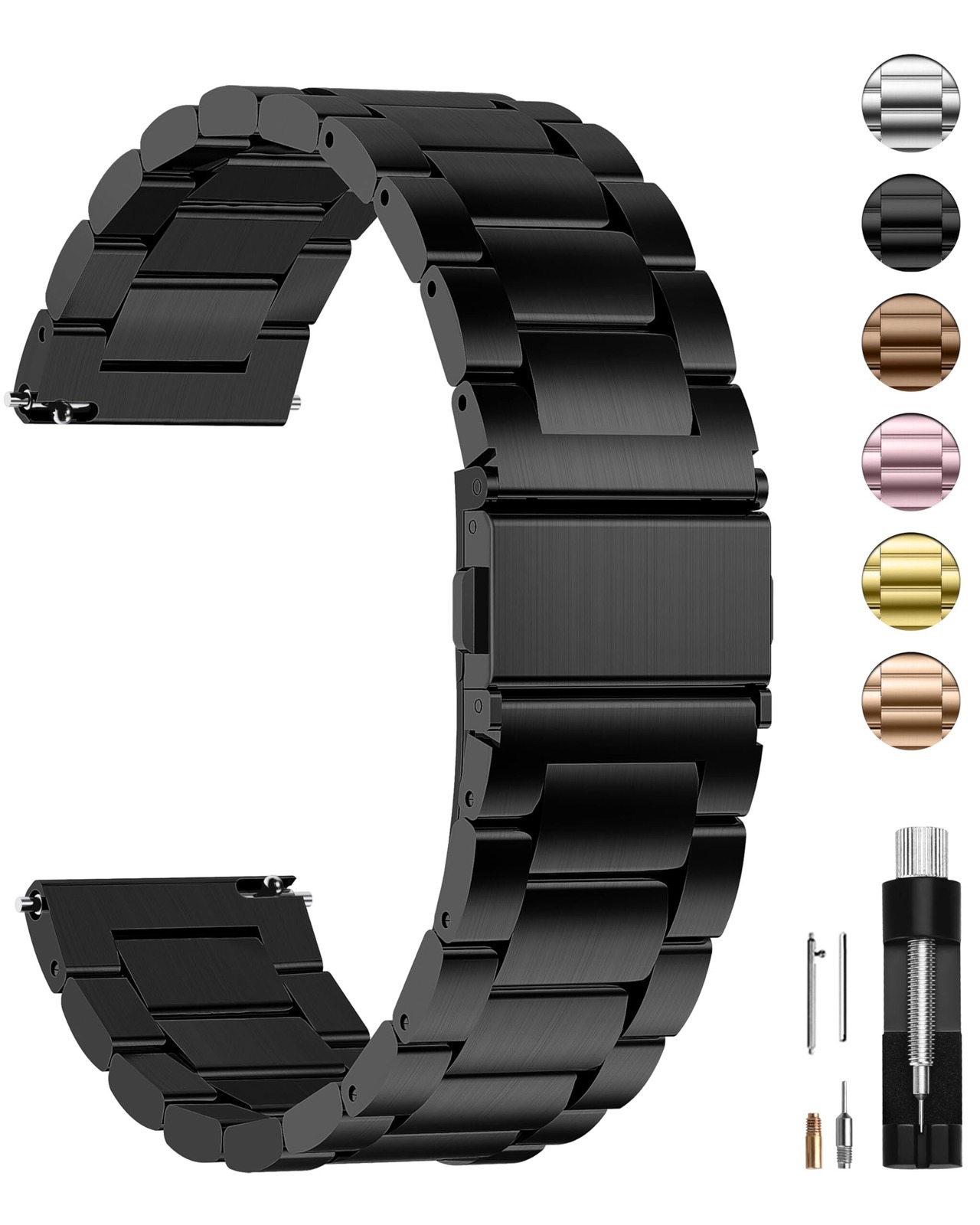 【新春セール】[Fullmosa] 時計バンド ベルト18mm 20mm 22mm 24mm 交換バンド ステンレス 腕時計バンド 金属バンド ストラップ ビジネス風 交換ベルト 調整工具付き【ブラック 20mm】