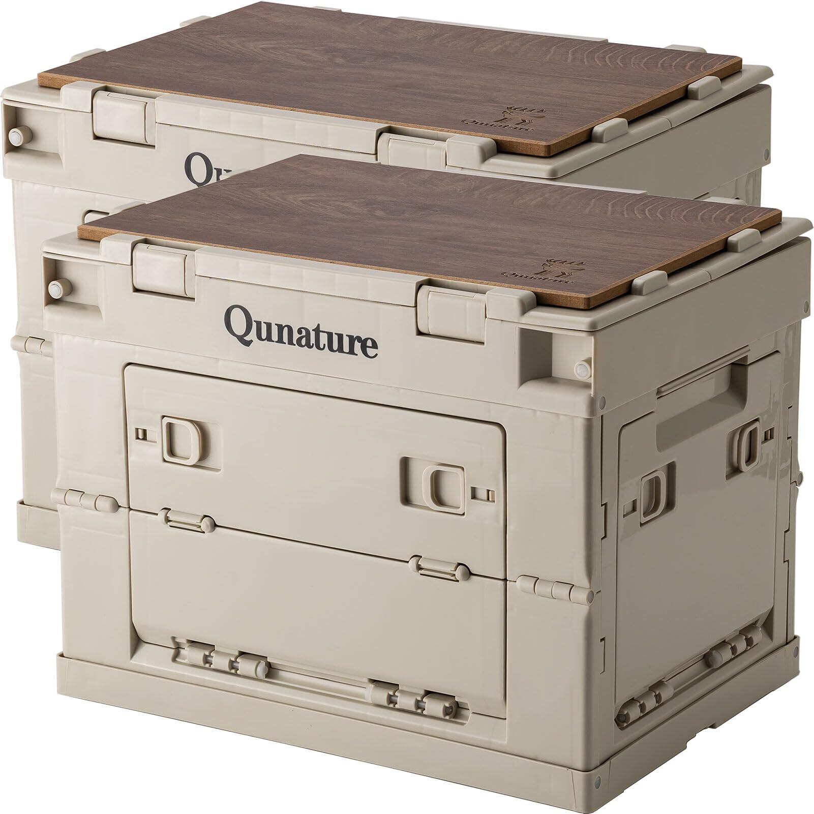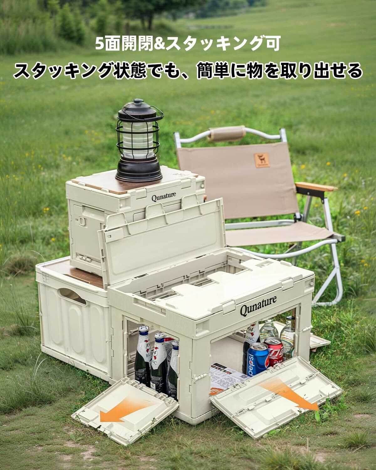 Qunature 収納ボックス 折り畳み キャンプ アウトドア用ボックス 収納 蓋付き 5面開き 全方向から取り出せる 大容量 収納ケース 強い耐荷重 積み重ね 組立簡単 アウトドア キャンプサイト 車 自宅 オフィス用 オリコン(26L,36*26*28cm,2個)